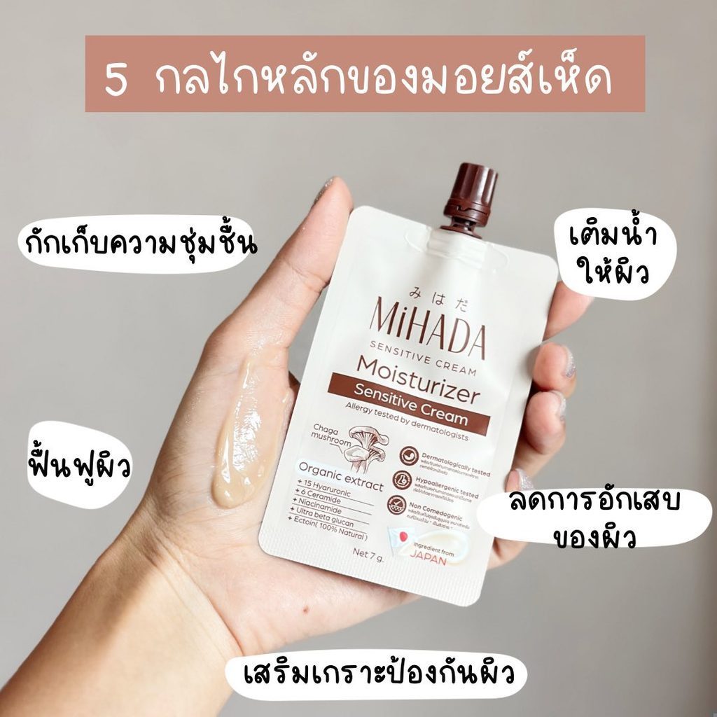 [กล่อง 6 ซอง] MiHADA Moisturizer Sensitive Cream มิฮาดะ มอยส์เห็ด บำรุงผิว ชุ่มซื่น 7 กรัม มอยเจอร์ไรเซอร์