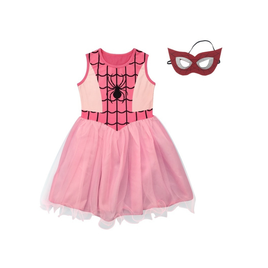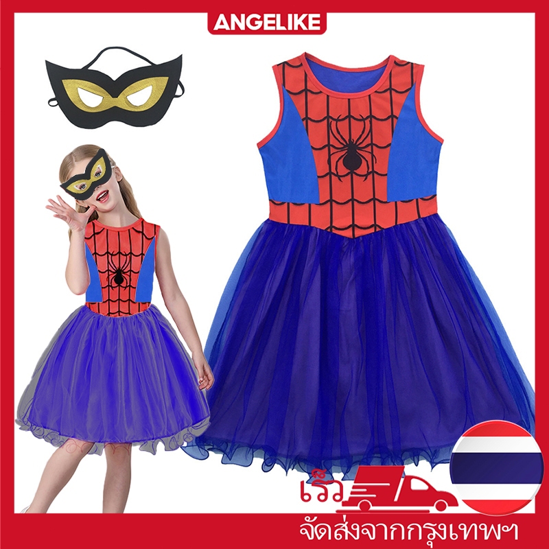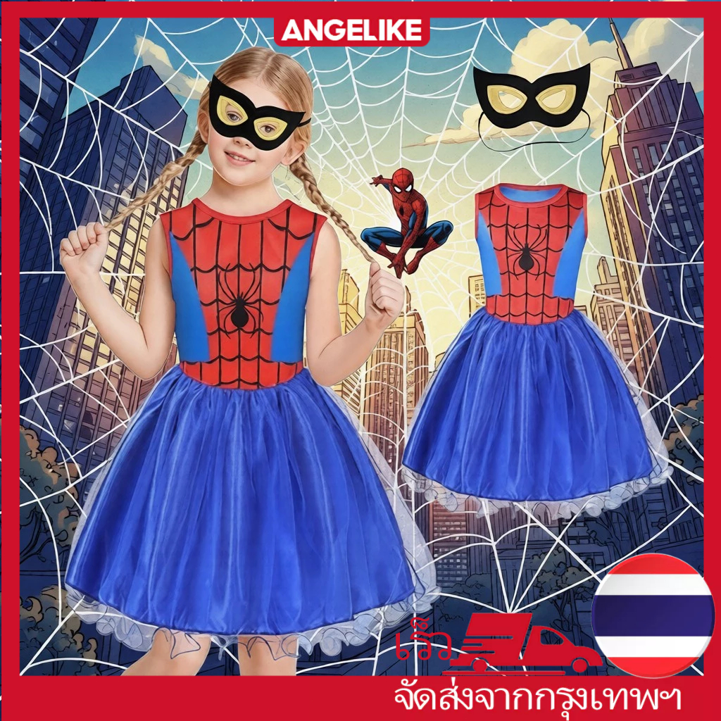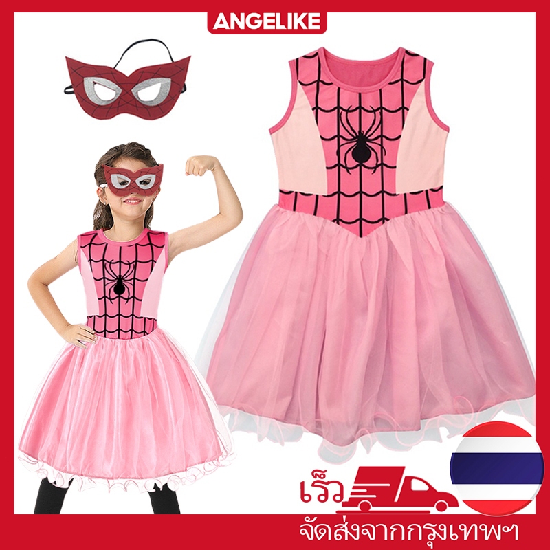 🇹🇭ส่งไวทันที 🇹🇭ไปเดอร์เกิร์ลไปเดอร์เกิร์ล ชุดคอสเพลย์ ซูเปอร์ฮีโร่ สไปเดอร์แมน พร้อมผ้าปิดตา สำหรับเด็กผู้หญิงอายุ 3-9