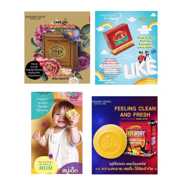 สบู่มาดามเฮง 150g x 3 ก้อน ทุกสูตร สบู่สมุนไพรกลั่น เมอรี่เบลล์ สูตรต้นตำหรับมาดามเฮง Madame Heng