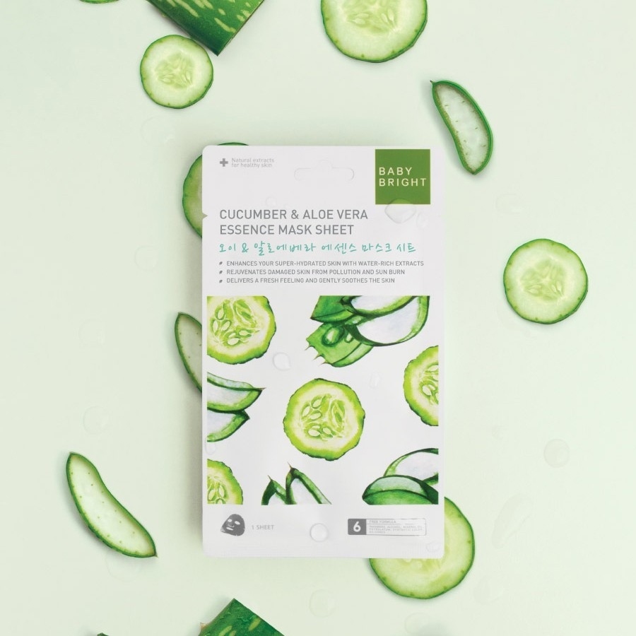 (กล่อง 6 ซอง) Baby Bright เอสเซนต์มาส์กชีท สูตร แตงกวา+อโลเวร่า (20 g.)
