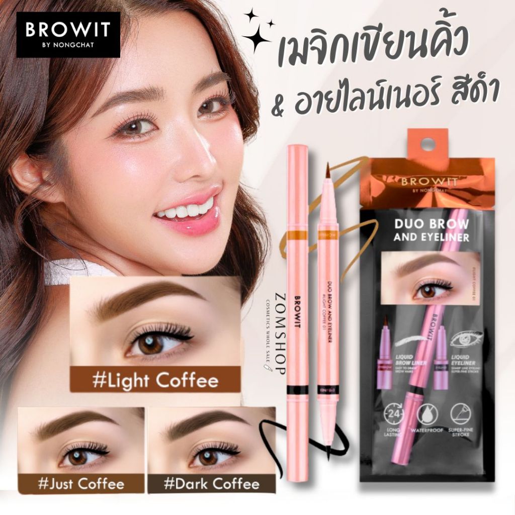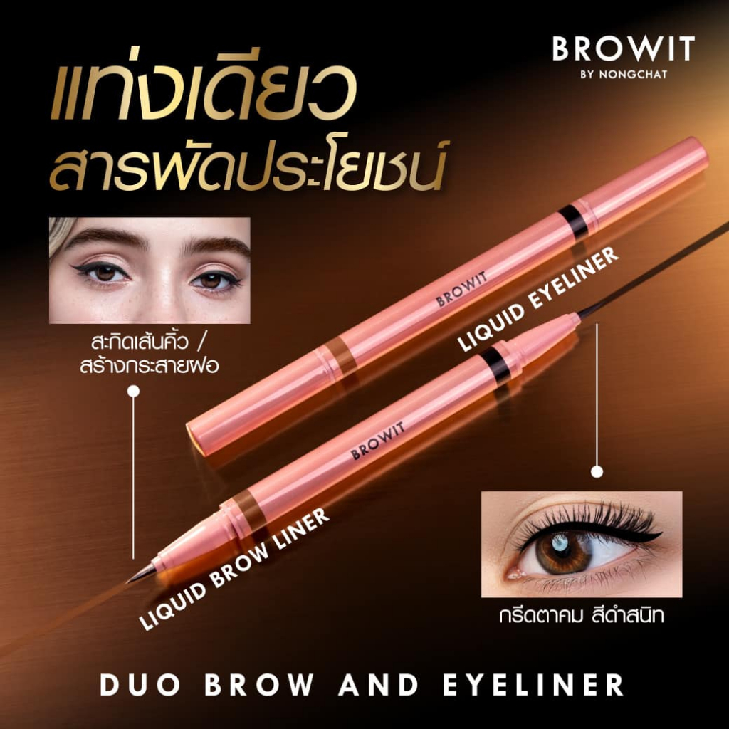 【น้องฉัตร】Duo เมจิกเขียนคิ้ว&อายไลน์เนอร์【ดูโอ้บราวแอนด์อายไลน์เนอร์】Browit Duo Brow And Eyeliner