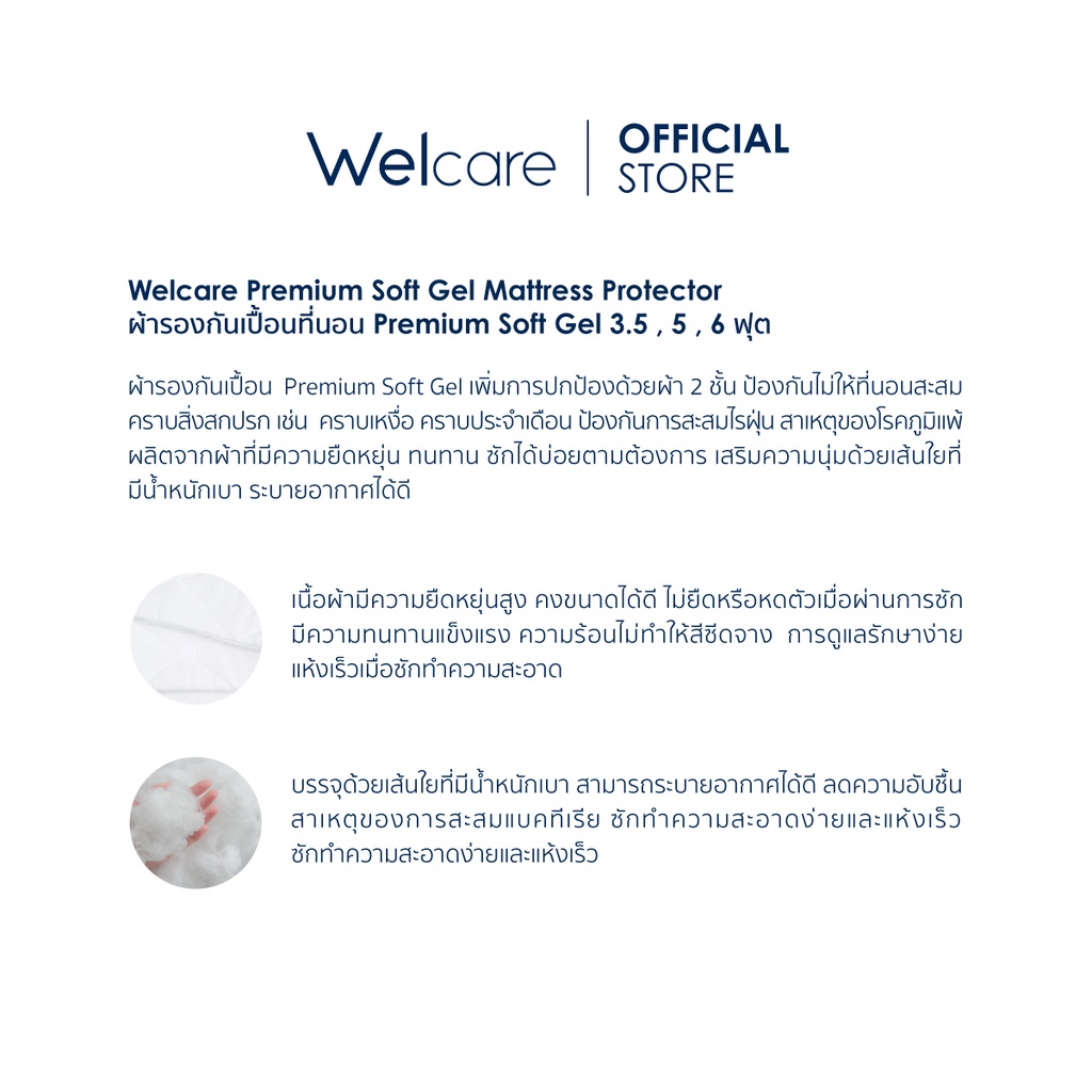 [Official] Welcare ผ้ารองกันเปื้อนที่นอน Premium SoftGel ขนาด 3.5 , 5 , 6 ฟุต