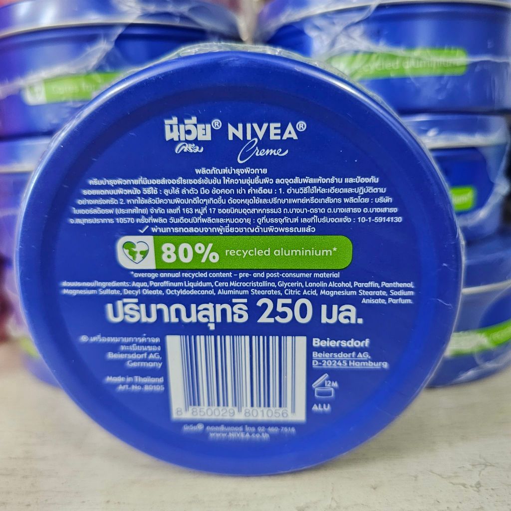 แพ็กเกจใหม่ นีเวีย ครีมบำรุงผิวสูตรเข้มข้น 250 มล. 150 มล. NIVEA cream niveacream ครีมบำรุงผิว ตลับน้ำเงิน มีฉลากเขียว