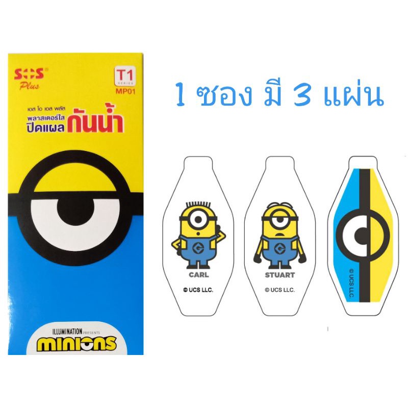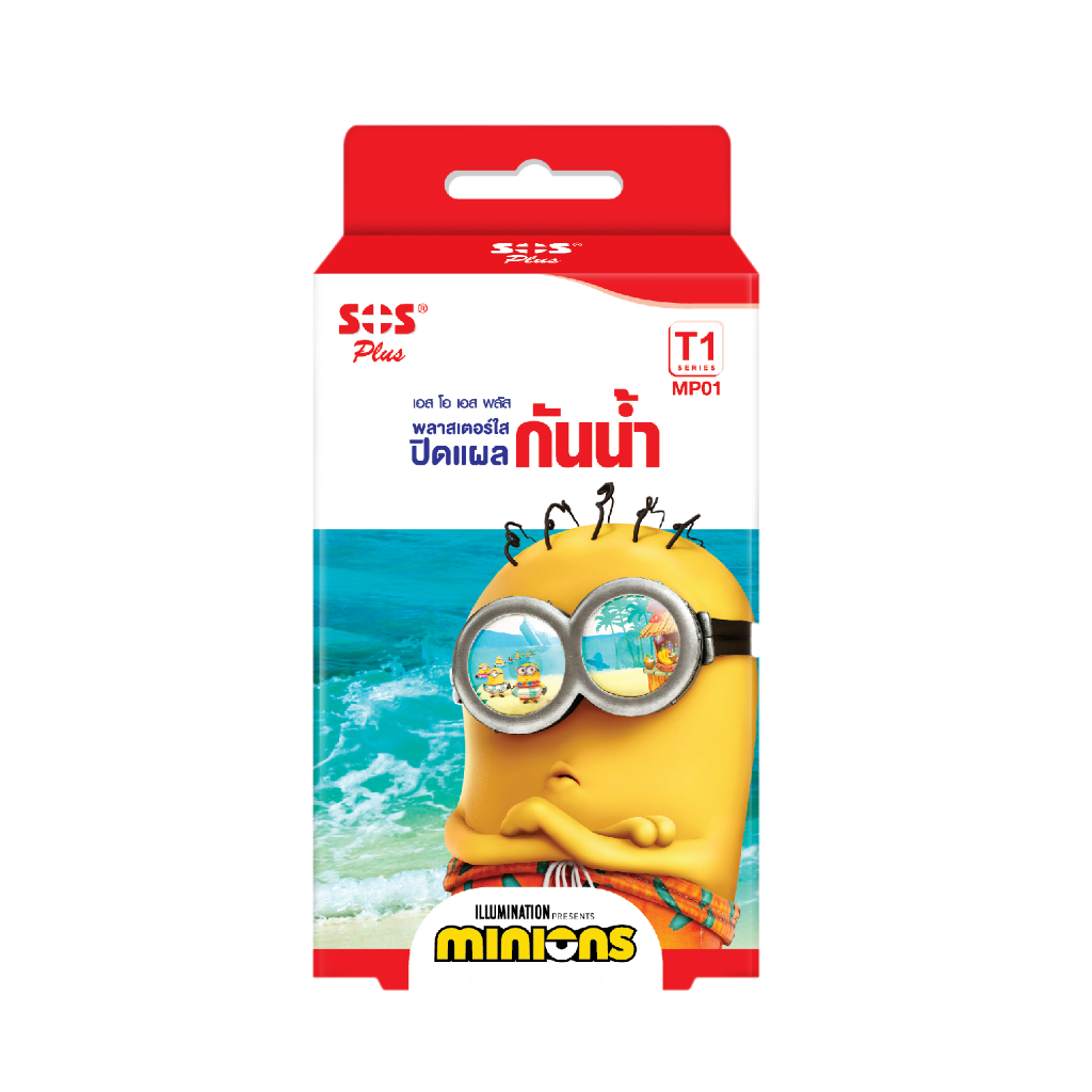 SOS MINIONS พลาสเตอร์ใส ปิดแผลกันน้ำ SOS Plus รุ่น T1 จำนวน 1 กล่อง 6แผ่น