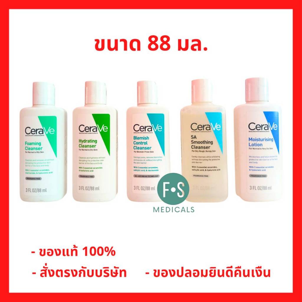 ล็อตใหม่!! เซราวี CERAVE Moisturising Lotion / Foaming Cleanser / Hydrating Cleanser โลชั่น /โฟมมิ่ง / ไฮเดรติ้ง 88 มล.
