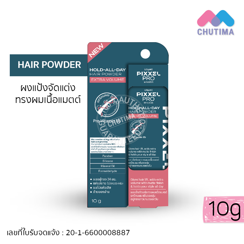 โลแลน พิกเซล โปร แป้งจัดแต่งทรงผม เนื้อแมตต์ ยกโคนผม Lolane Pixxel Pro Hold-All-Day Hair Powder Extra Volume 10g.