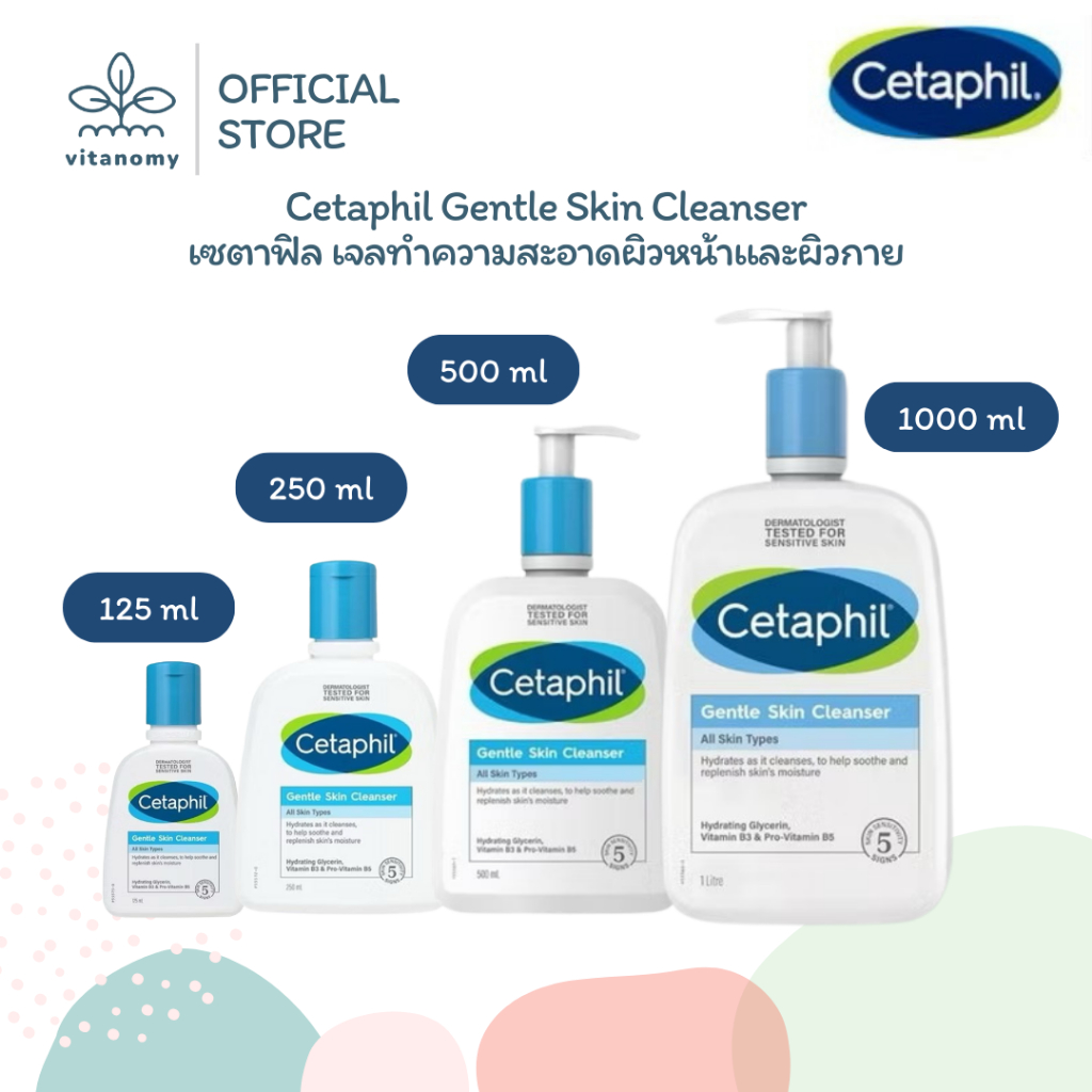 Cetaphil Gentle Skin Cleanser เซตาฟิล | เจลทำความสะอาดผิวหน้าและผิวกาย ผิวบอบบาง แพ้ง่าย | ขนาด 125, 250, 500,1000 ml.