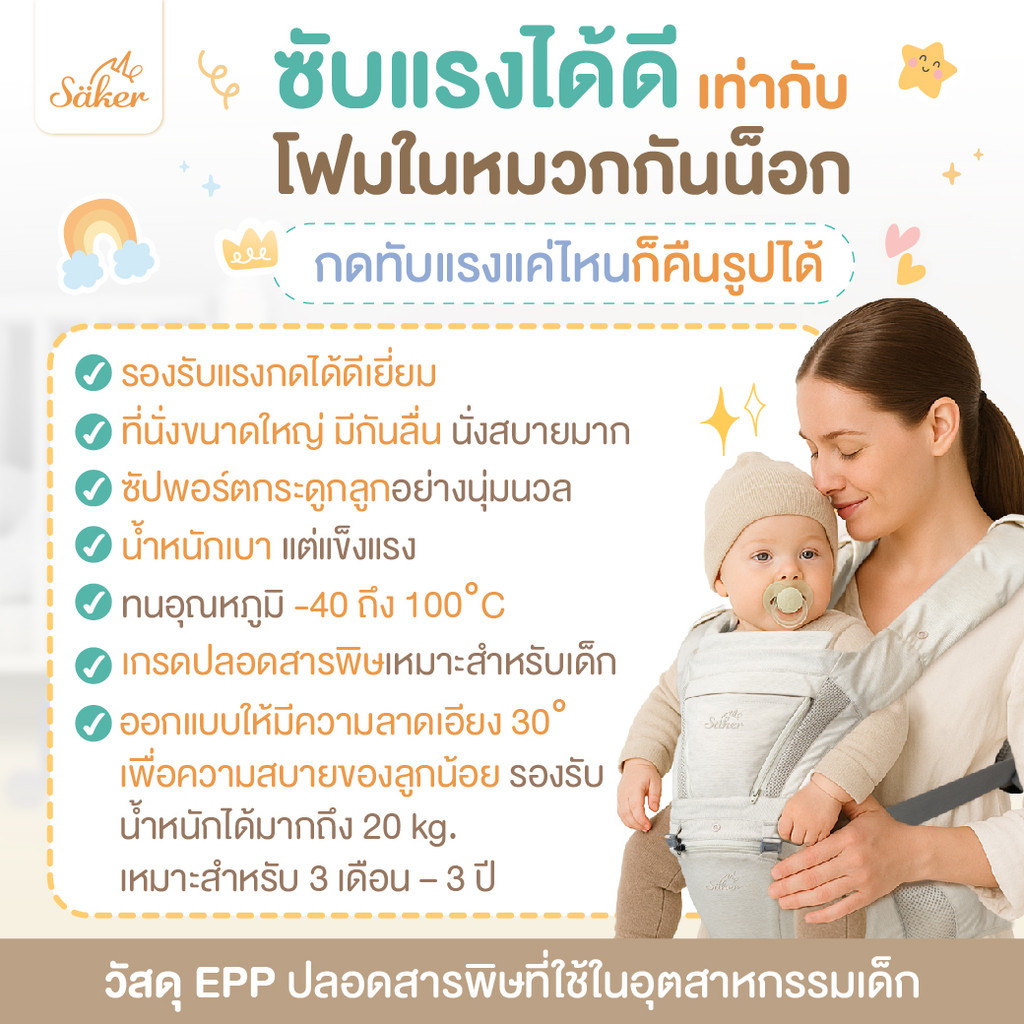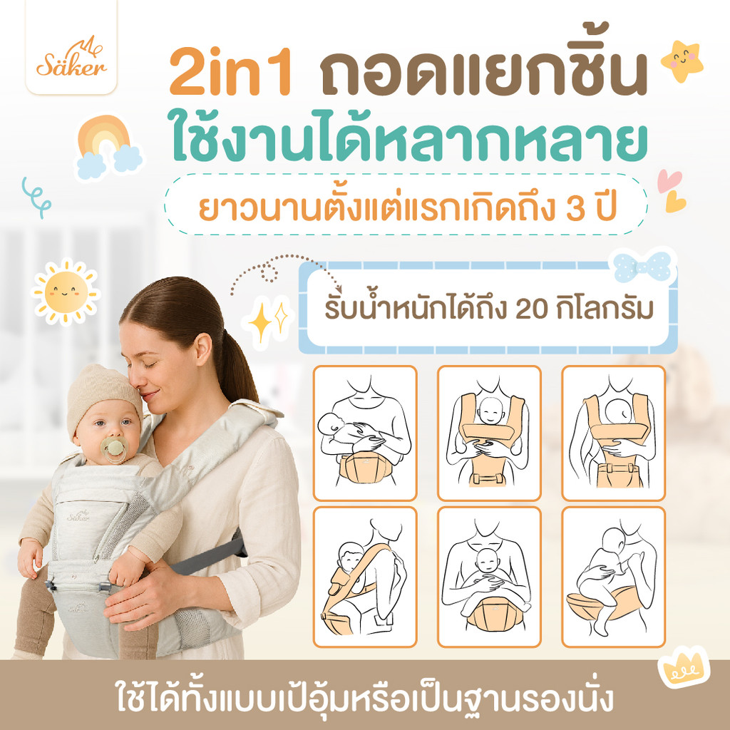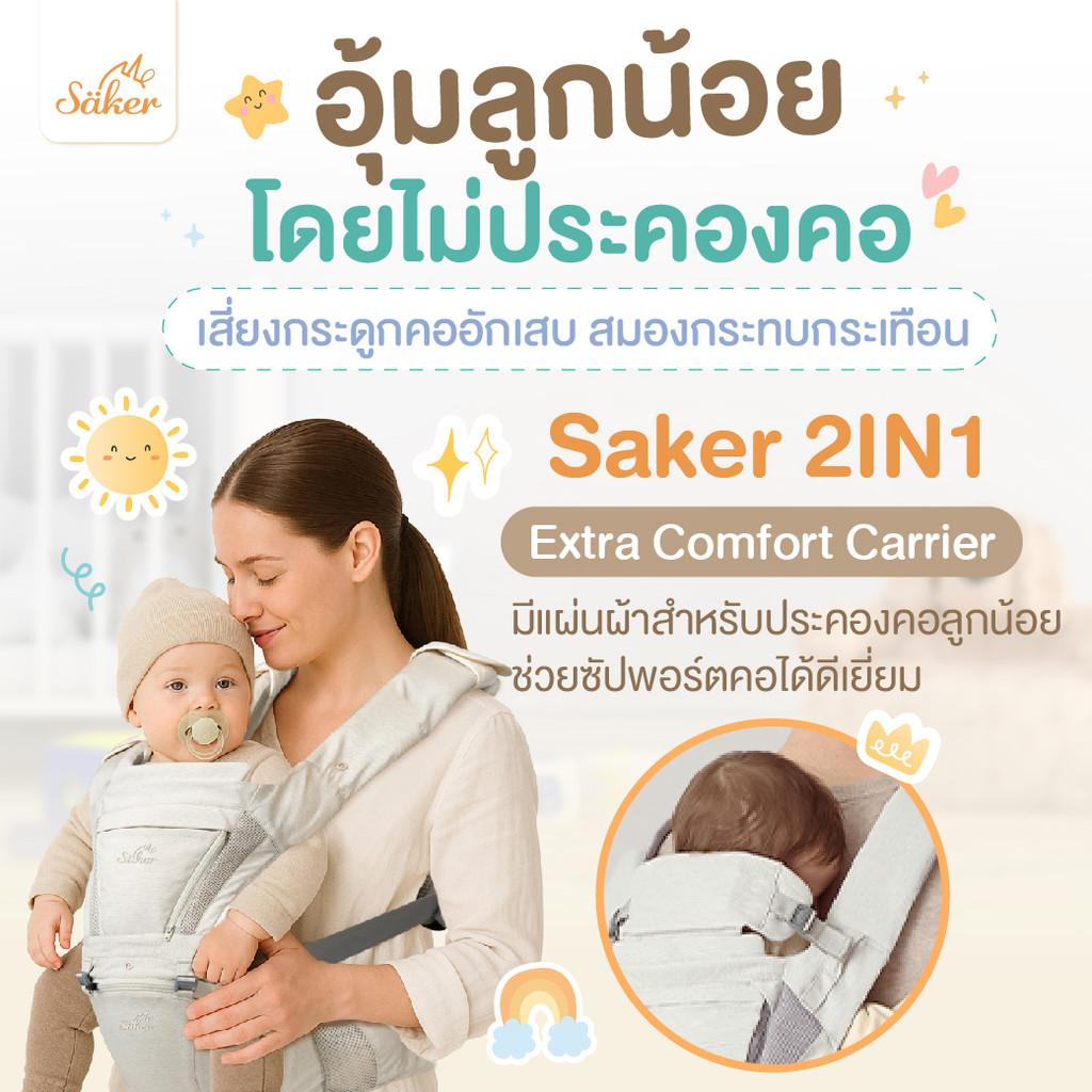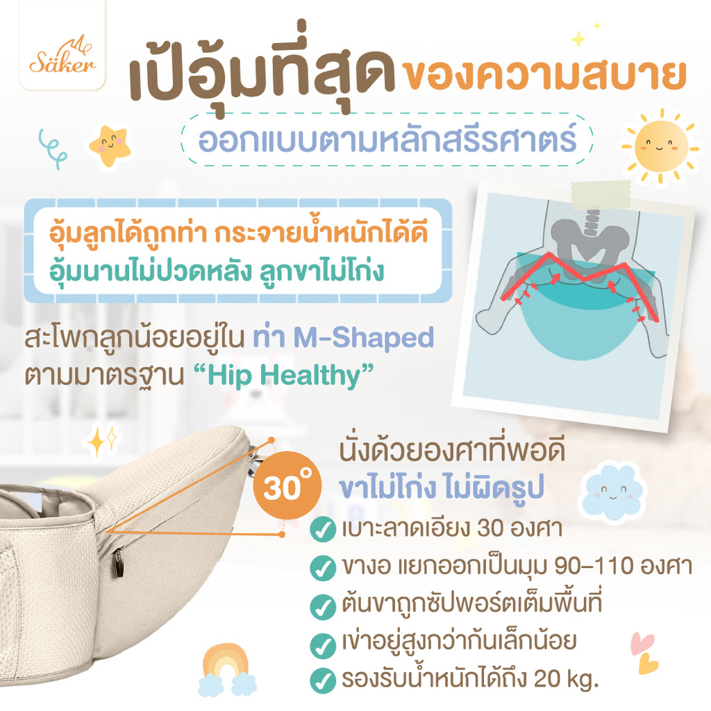 (สเปคเทียบ7ถึง8พัน฿)เป้อุ้มออร์แกนิกปลอดสารพิษSaker ออกแบบตามหลักสรีรศาสตร์ ลูกหลังตรงขาไม่โก่งลดปวด