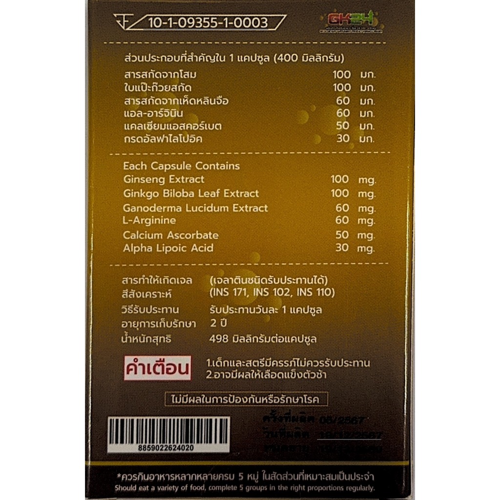 GK24 ตราเกร็กคู บรรจุ 4 แคปซูล อาหารเสริมบำรุงคุณผู้ชาย 83059
