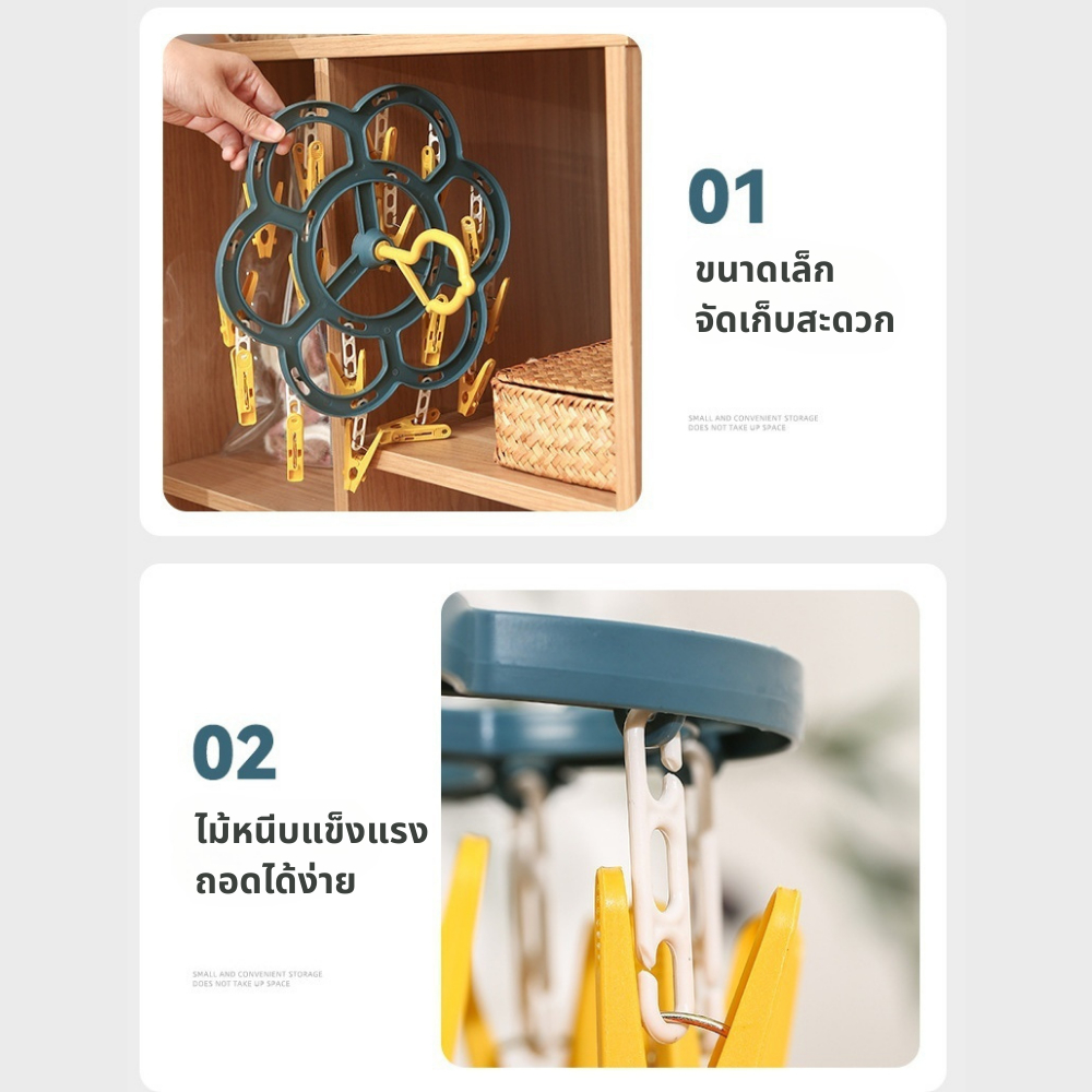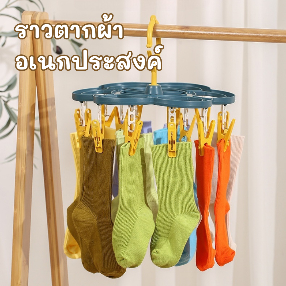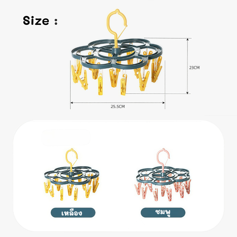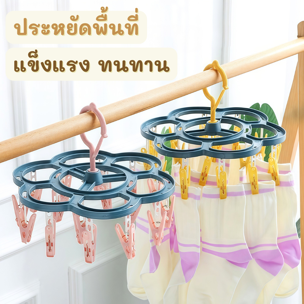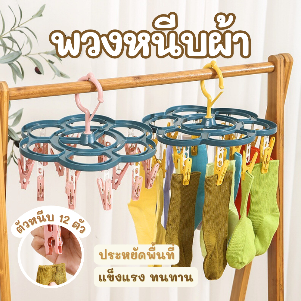 พวงหนีบผ้า ตัวหนีบ 12 ตัว ที่หนีบแบบแขวน ที่ตากกางเกงชั้นใน เสื้อชั้นใน ถุงเท้า ที่หนีบผ้า