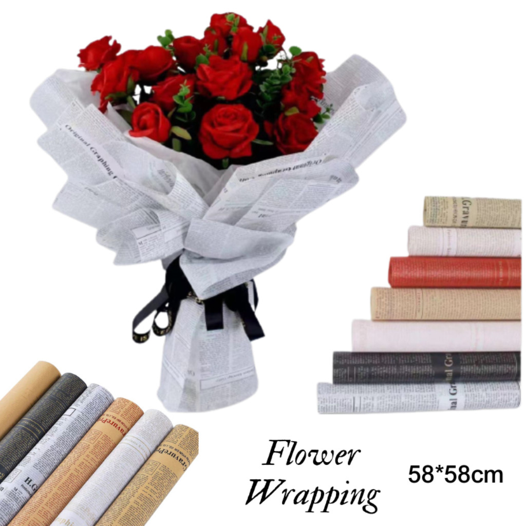 กระดาษห่อช่อดอกไม้ กันน้ำ 100% หลากสี สไตล์หนังสือพิมพ์ วัสดุกันน้ำ ขนาด 58*58ซม. DIY งานครบรอบแต่งงาน