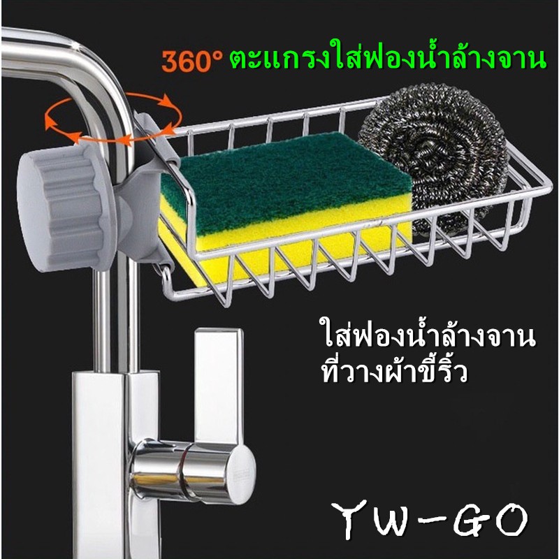 ตะแกรงที่วางผ้าขี้ริ้ว ติดก๊อกน้ำ ใส่ฟองน้ำล้างจาน ที่วางสบู่ (พร้อมส่งค่ะ)G2737