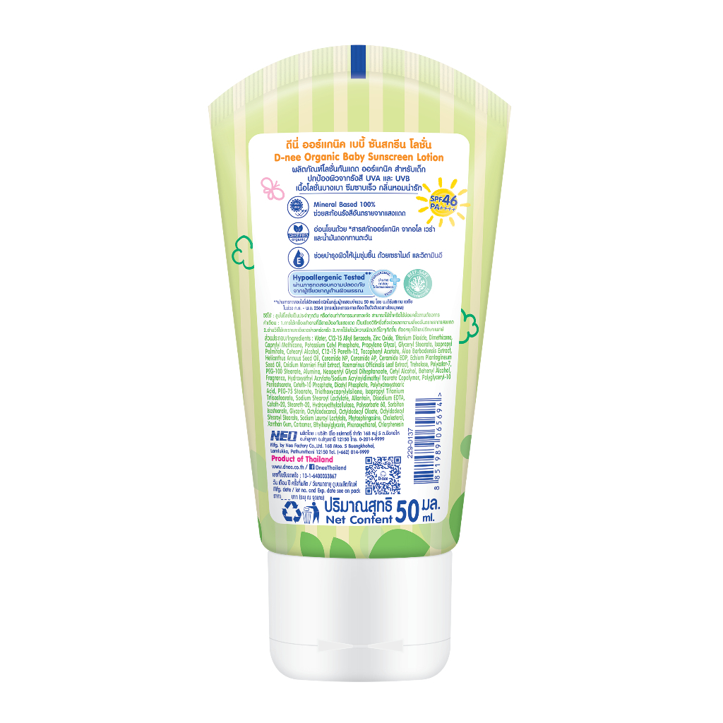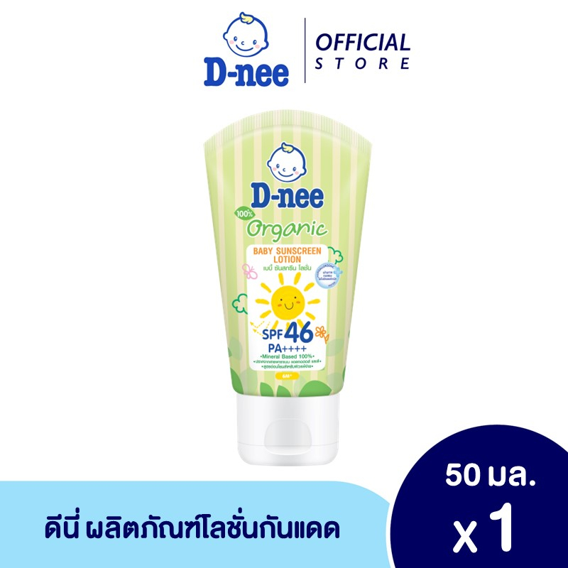 D-nee ดีนี่ ออร์แกนิค เบบี้ ซันสกรีนโลชั่น SPF 46 PA++++ ขนาด50 มล. 065694