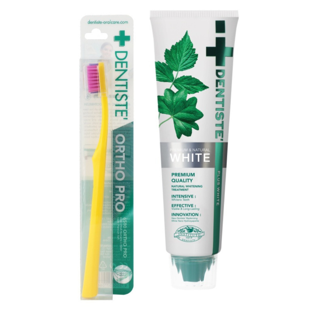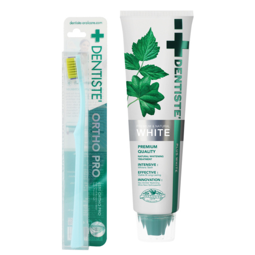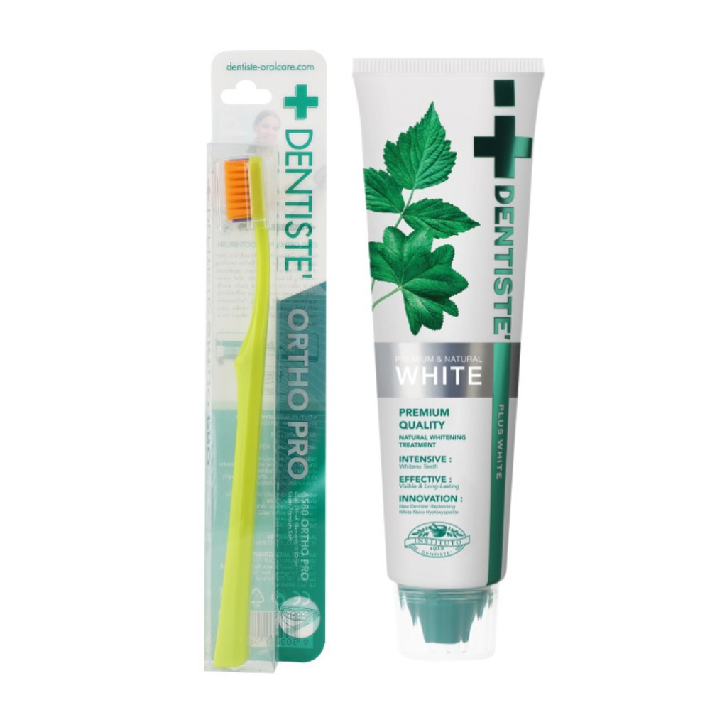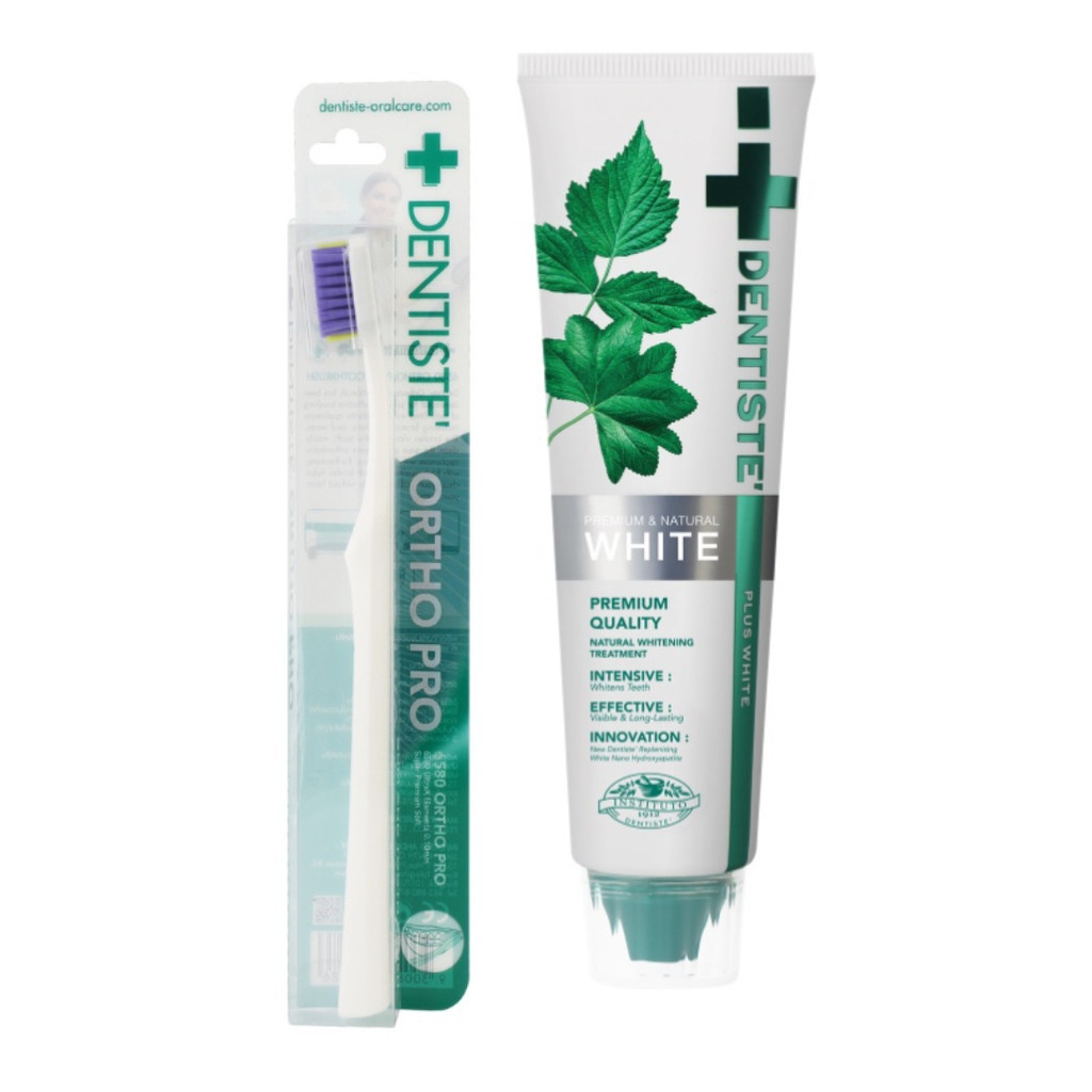 [Set คละสี] Dentiste แปรงสีฟันจัดฟัน + ยาสีฟัน Premium & Natural White 100 กรัม [PC]