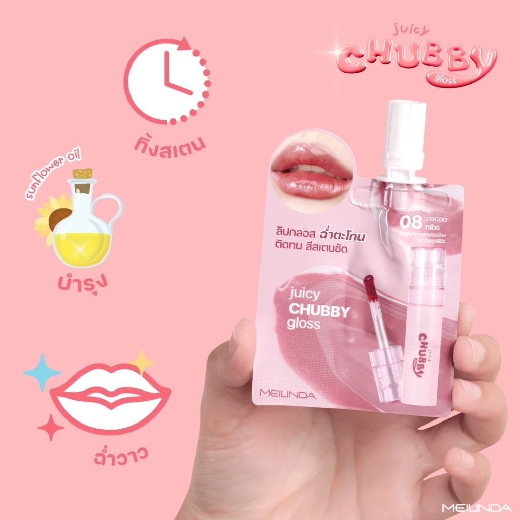 ถูก/แท้/มีไลฟ์ (ซอง) ลิป MEILINDA Juicy Chubby Gloss ลิปชัปปี้ ลิปกลอส กลอสปากฉ่ำ ฉ่ำวาว ทิ้งสเตน