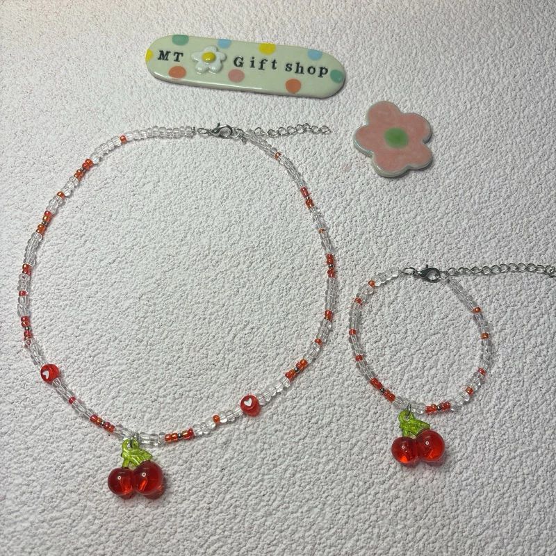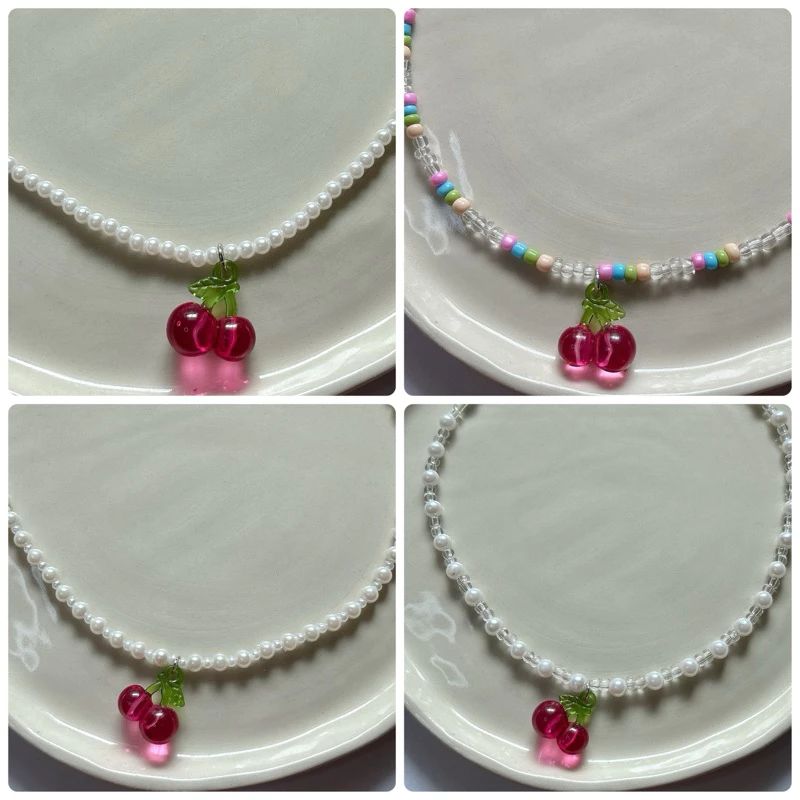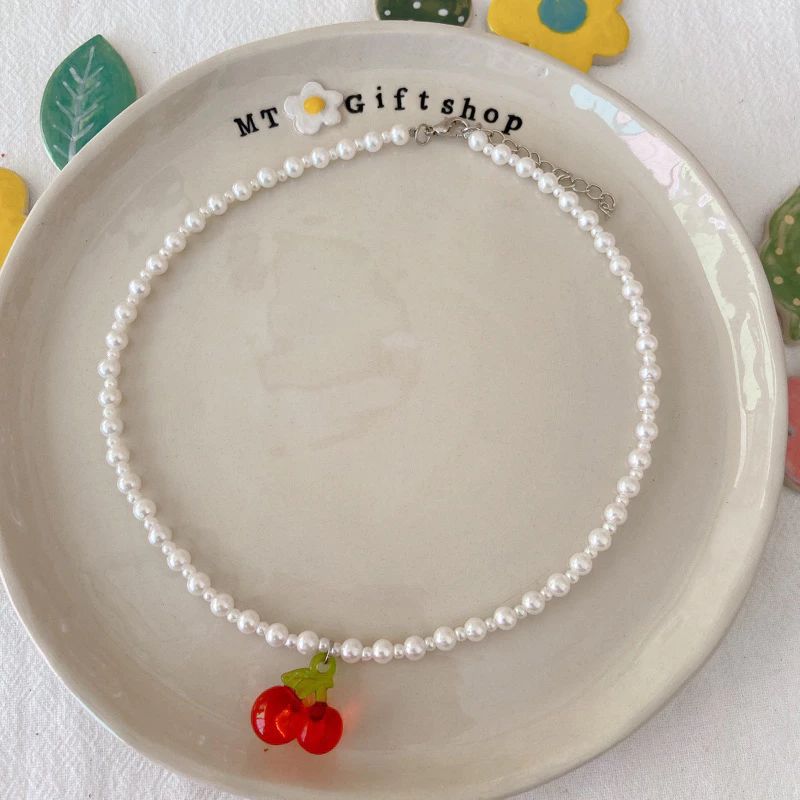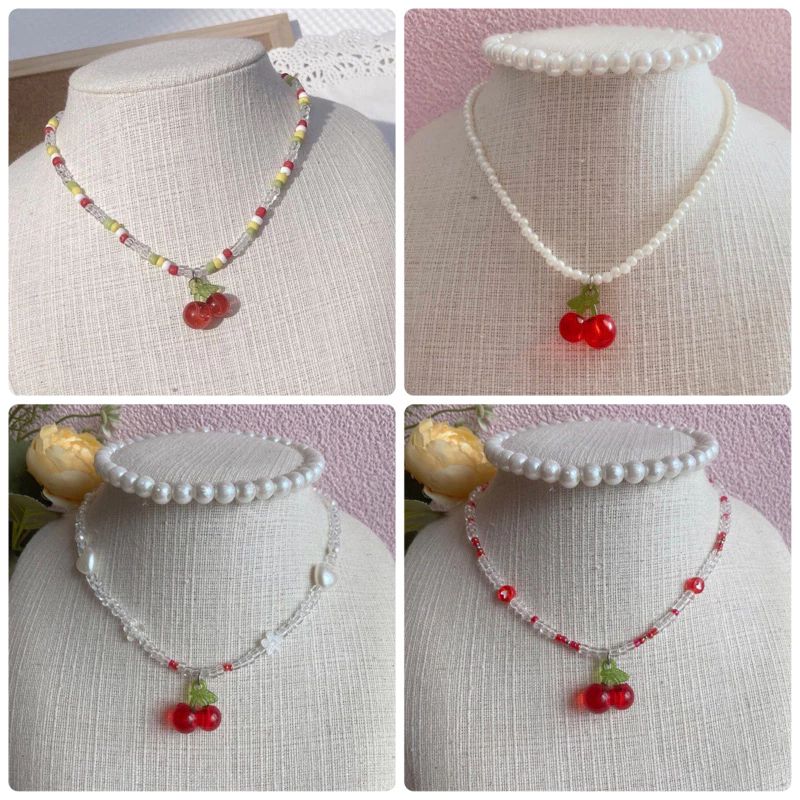 สร้อยคอลูกปัดจี้เชอรี่ A002 ความยาว 15 นิ้ว มีหลายแบบให้เลือก