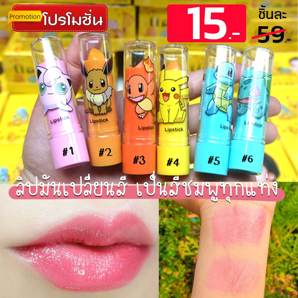 (1ชิ้น) ลิปมันเปลี่ยนสีชมพู "โปเกมอน" Heng Fang Lip Balm 3.5g