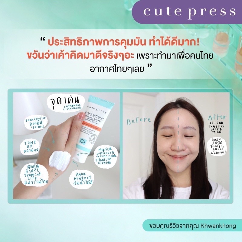 CUTE PRESS ครีมกันแดด CI-LAB SENSITIV ULTRA MILD TONE UP SUNSCREEN SPF 50+ PA++++ ชนิดซอง ขนาด 6 กรัม