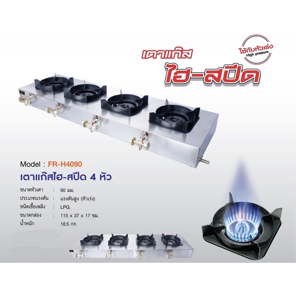 เตาแก๊สแรงดันสู (ไฮ-สปีด) 4 หัว ใช้กับหัวเร่ง ไฟแรง FRY KING รุ่น FR-H4090 (พร้อมส่ง)