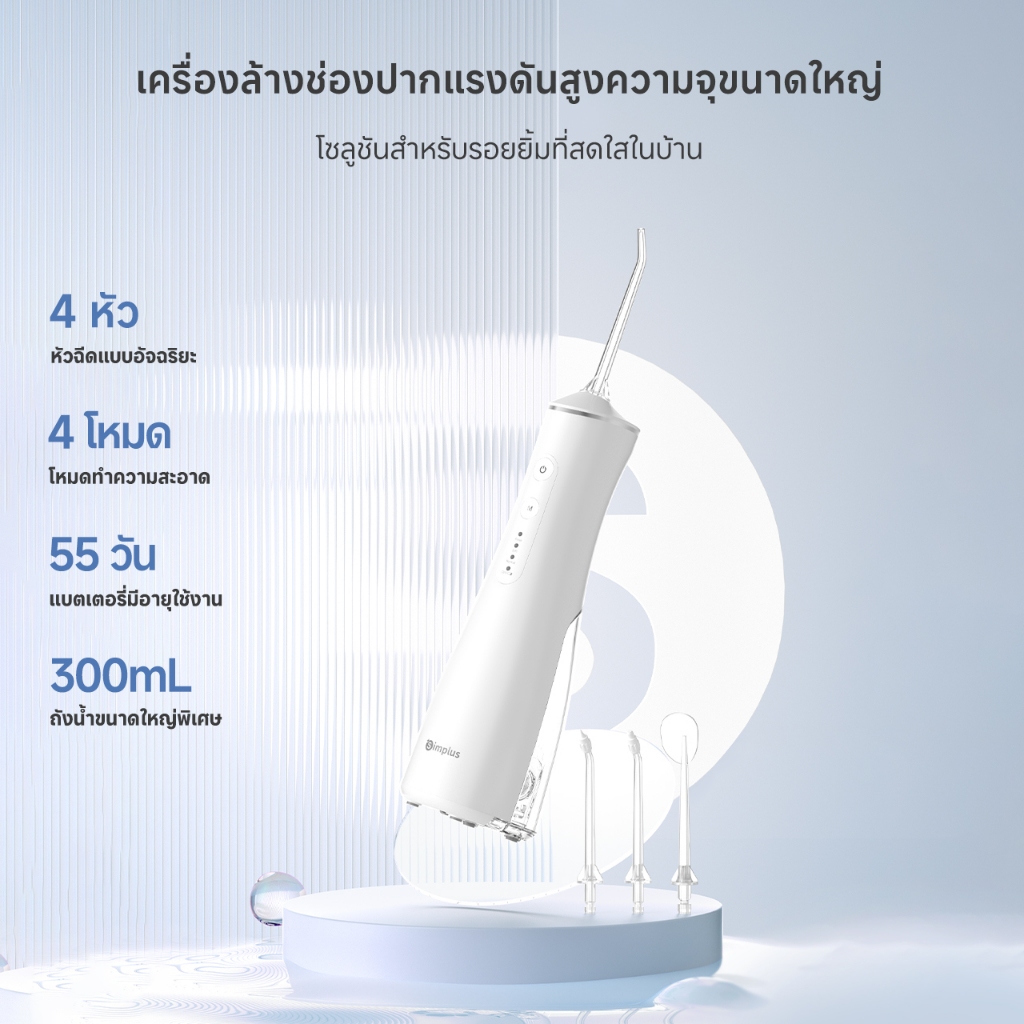 Simplus เครื่องล้างช่องปาก ถังน้ำขนาดใหญ่ 300 มล. 4 โหมด 4 หัวฉีด อายุการใช้งานแบตเตอรี่ 55 วัน ความถี่พัลส์ 1600 ครั้งต่อนาที เครื่องล้างช่องปากแบบพกพาไร้สาย สามารถชาร์จได้ CYQH003