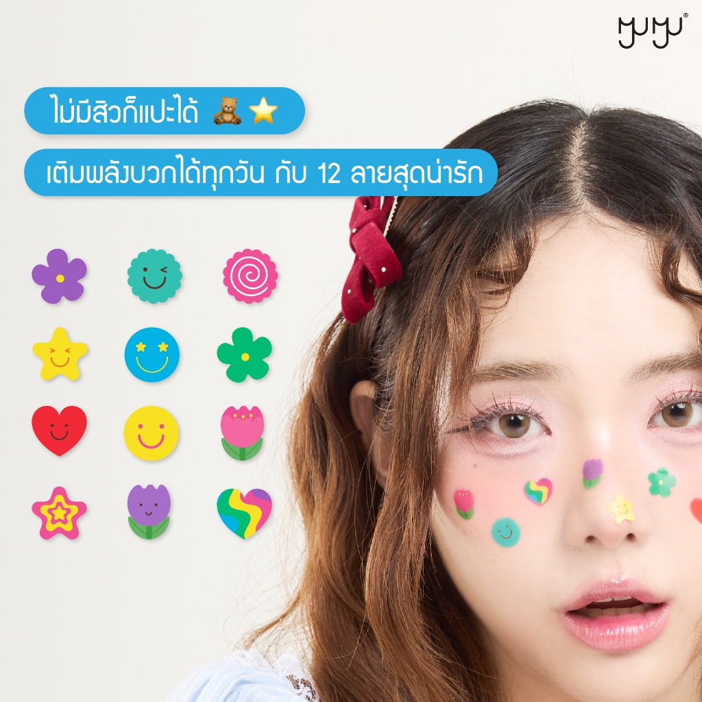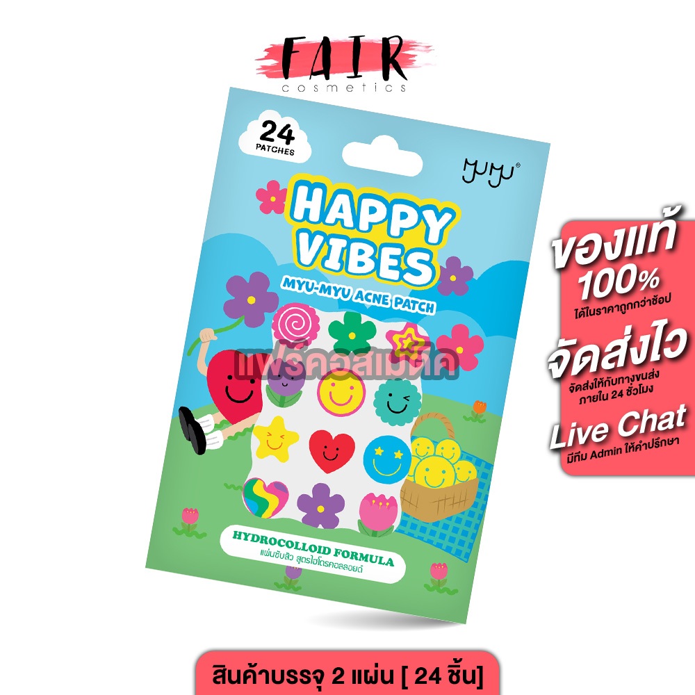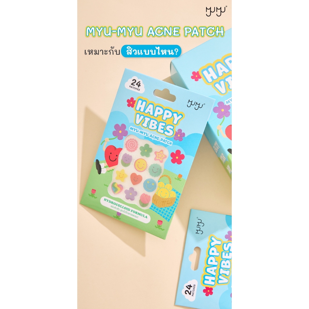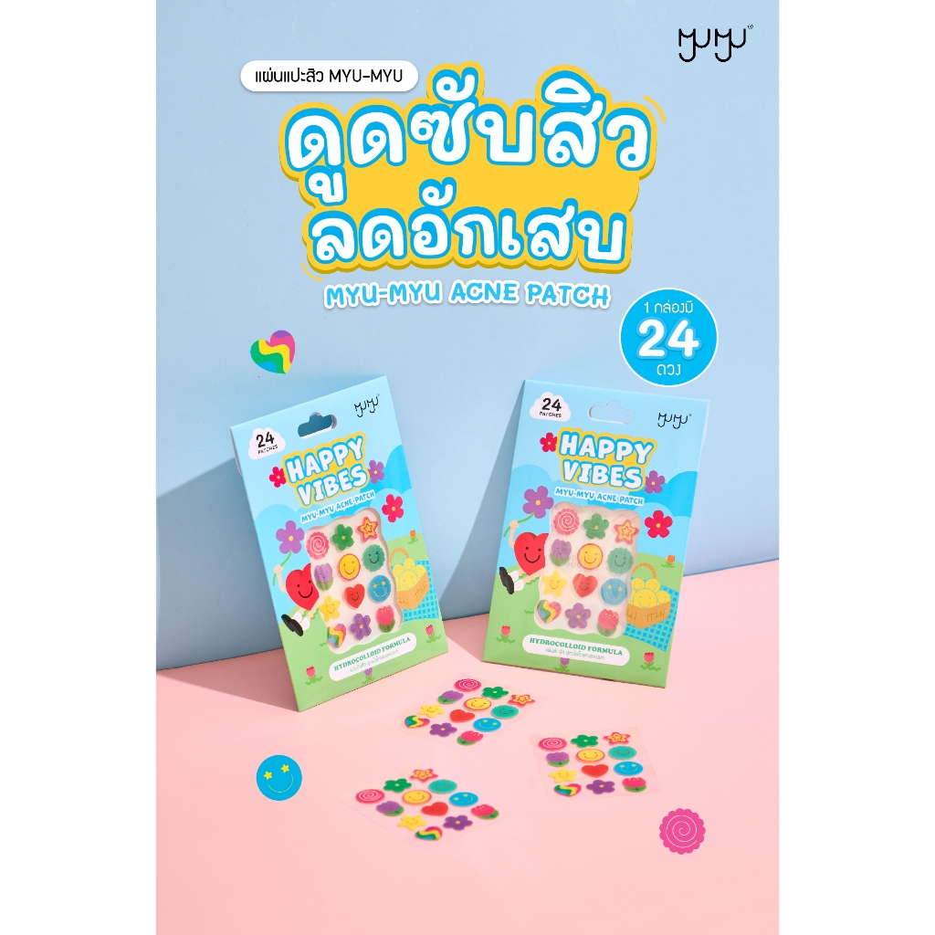 Myu Myu Acne Patch Happy Vibs มิว มิว แอคเน่ แพทช์ แฮปปี้ไวป์ [2 แผ่น 24 ชิ้น] แผ่นแปะสิว มิวมิว แผ่นซับสิว ลายน่ารัก