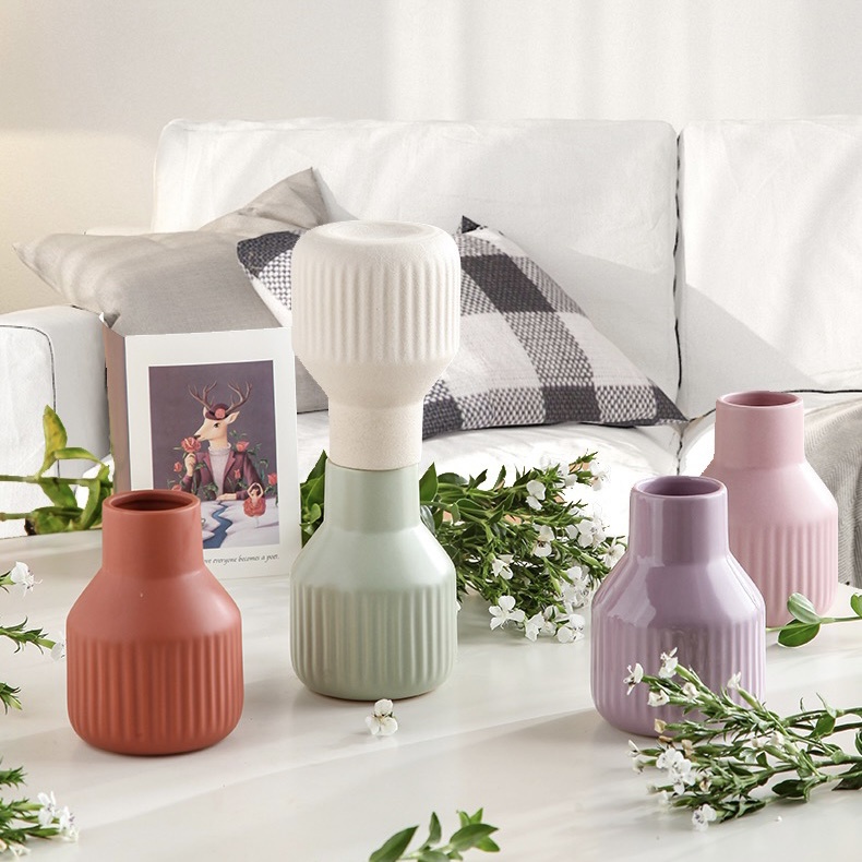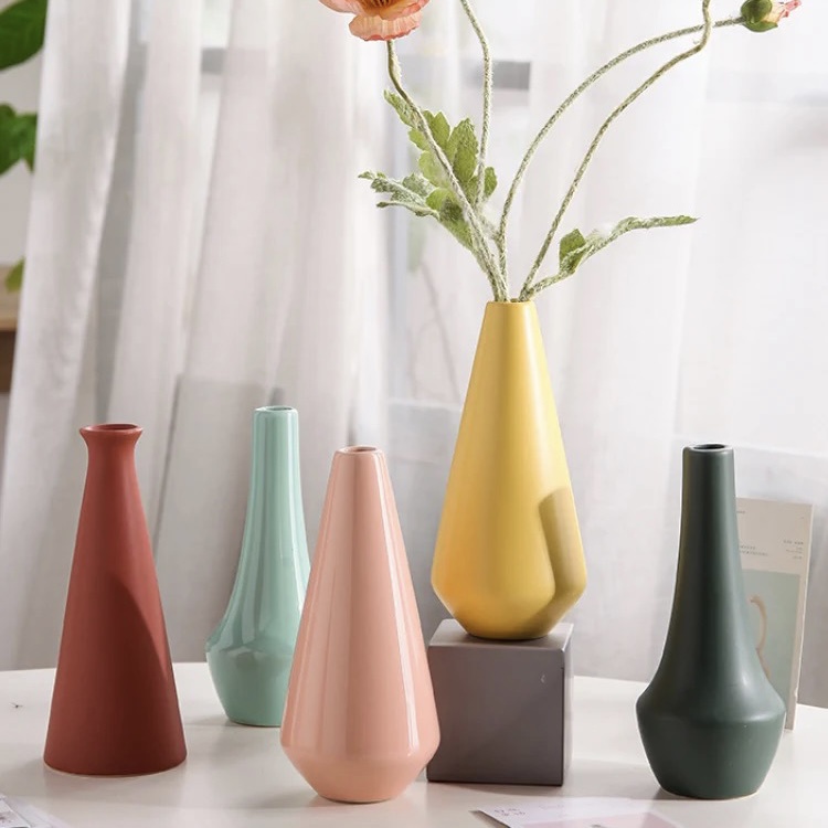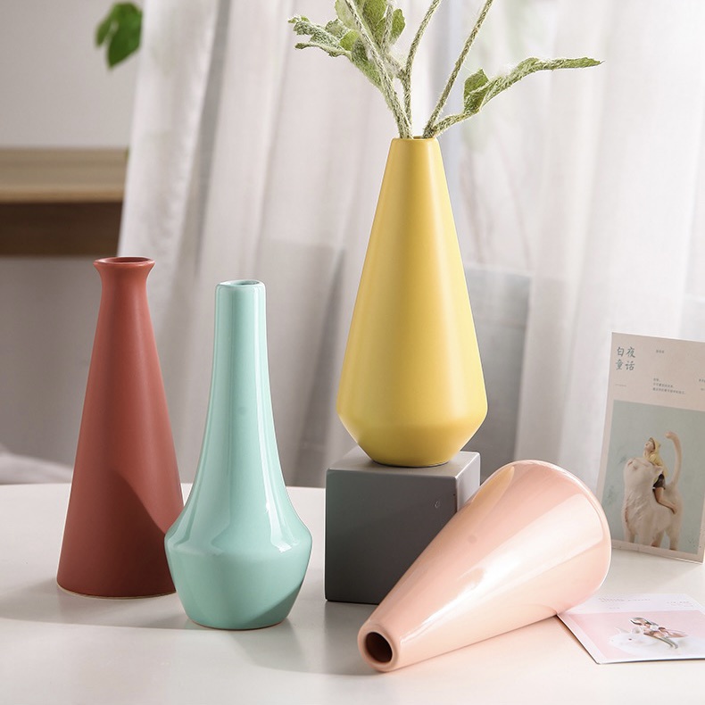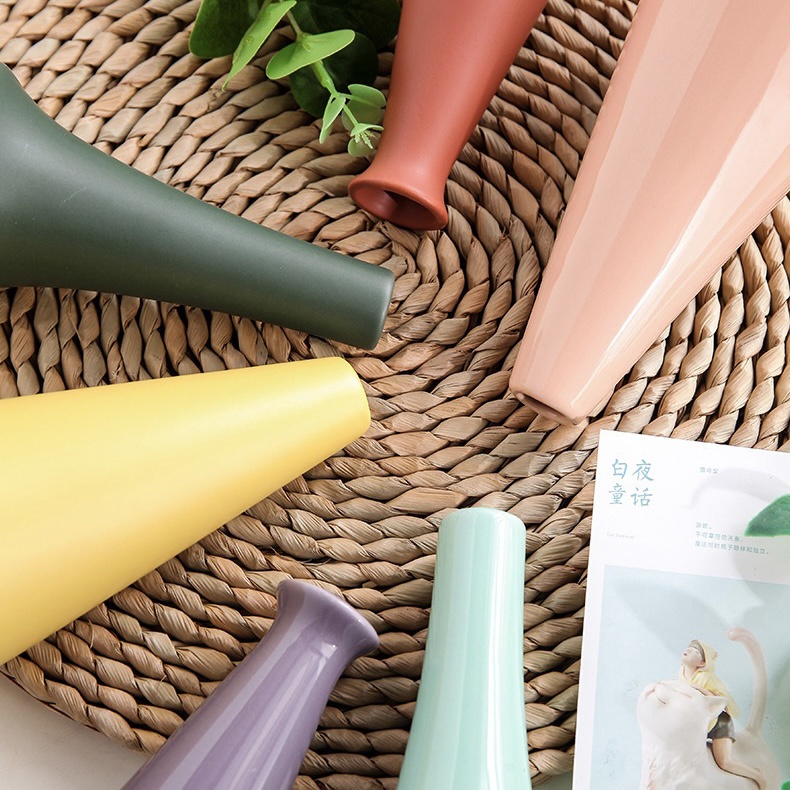 ส่งด่วน แจกันเซรามิคสีพาสเทล สำหรับใส่ดอกไม้ แบบมินิมอล ตกแต่งห้อง ตกแต่งบ้าน พร๊อพถ่ายรูป ทรงขวดหลากสีพาสเทล