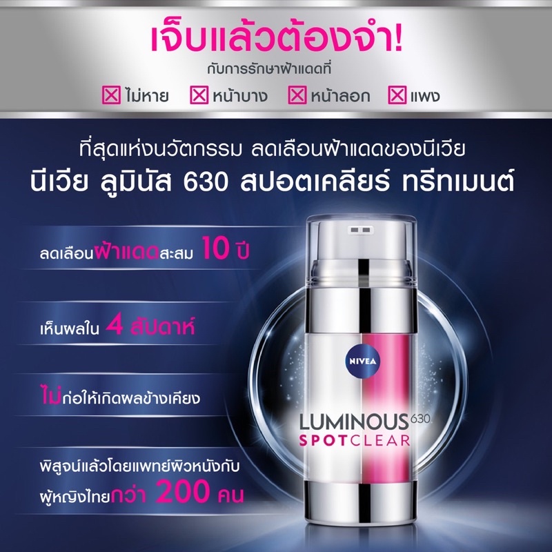นีเวีย ลูมินัส630 สปอตเคลียร์ ทรีทเม้นท์ 30 มล. NIVEA LUMINOUS630 SPOTCLEAR TREATMENT 30mL (ลดฝ้าแดด)