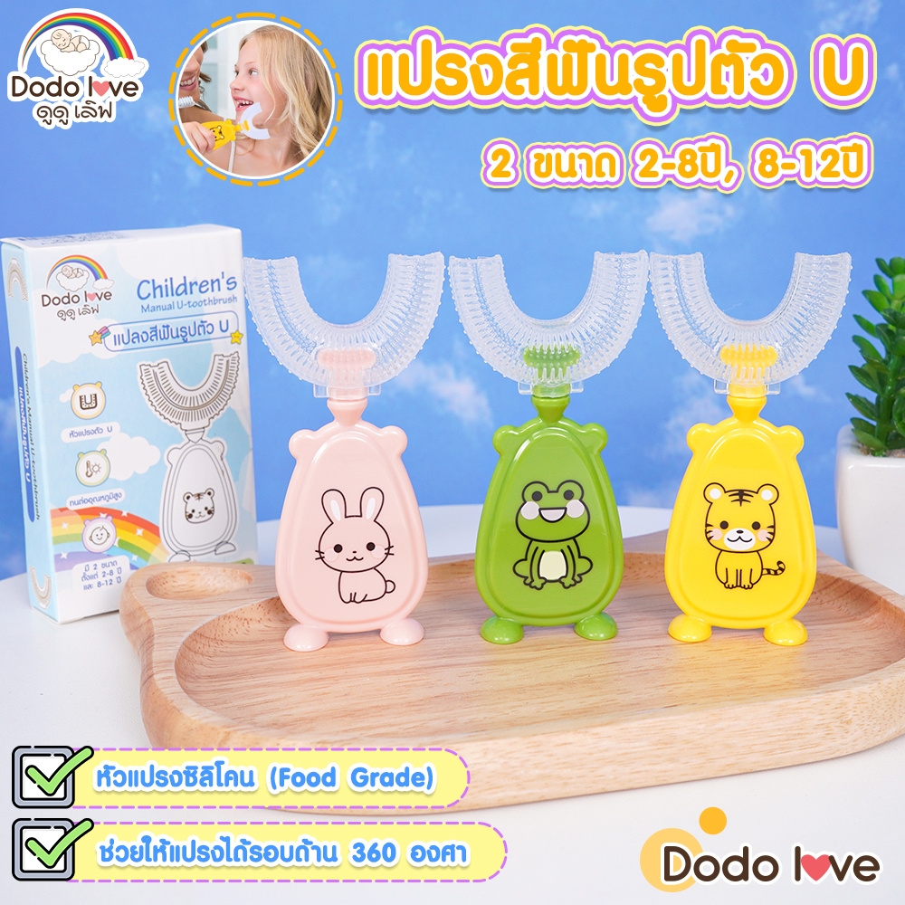 DODOLOVE แปรงสีฟัน แปรงสีฟันซิลิโคน ทําความสะอาดฟันเด็กออกแบบรูปตัว U 360 องศา (Food Grade)