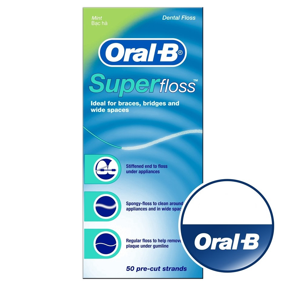 Oral-B Super floss 50 pre cut stands ออรัล-บี ไหมขัดฟัน ซูเปอร์ฟลอส 50 เส้น