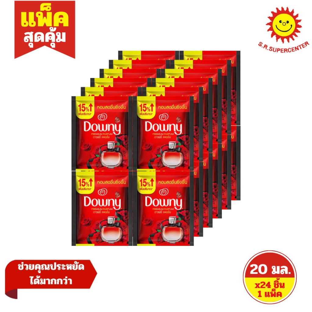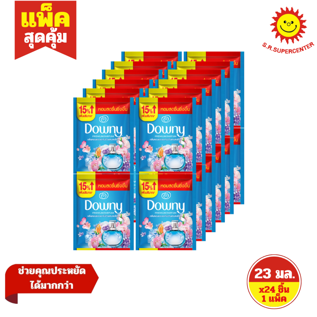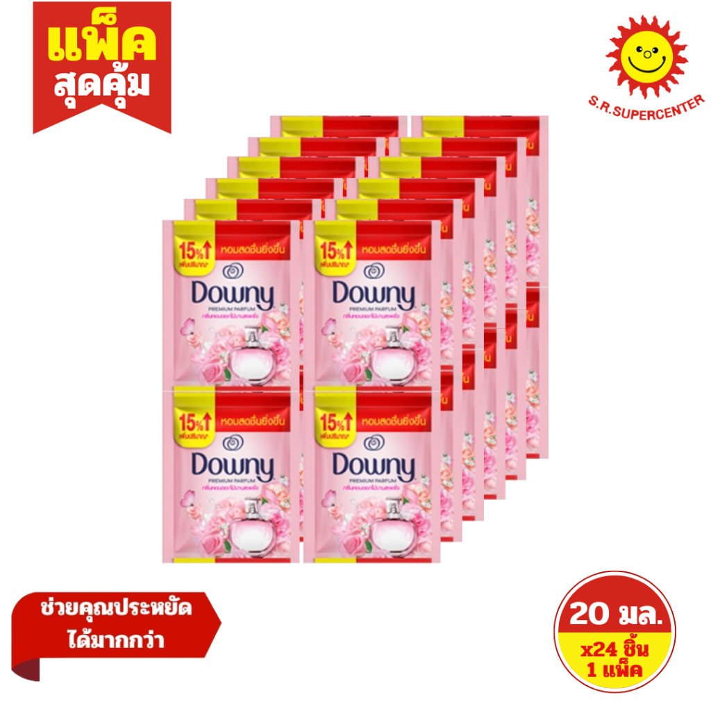 [ 1แพ็ค ] Downy ดาวน์นี่ พรีเมี่ยม เพอร์ฟูม ผลิตภัณฑ์ปรับผ้านุ่มสูตรเข้มข้นพิเศษ ขนาด 20-23 มล. x24 ชิ้น (1แพ็ค) คละสูตร