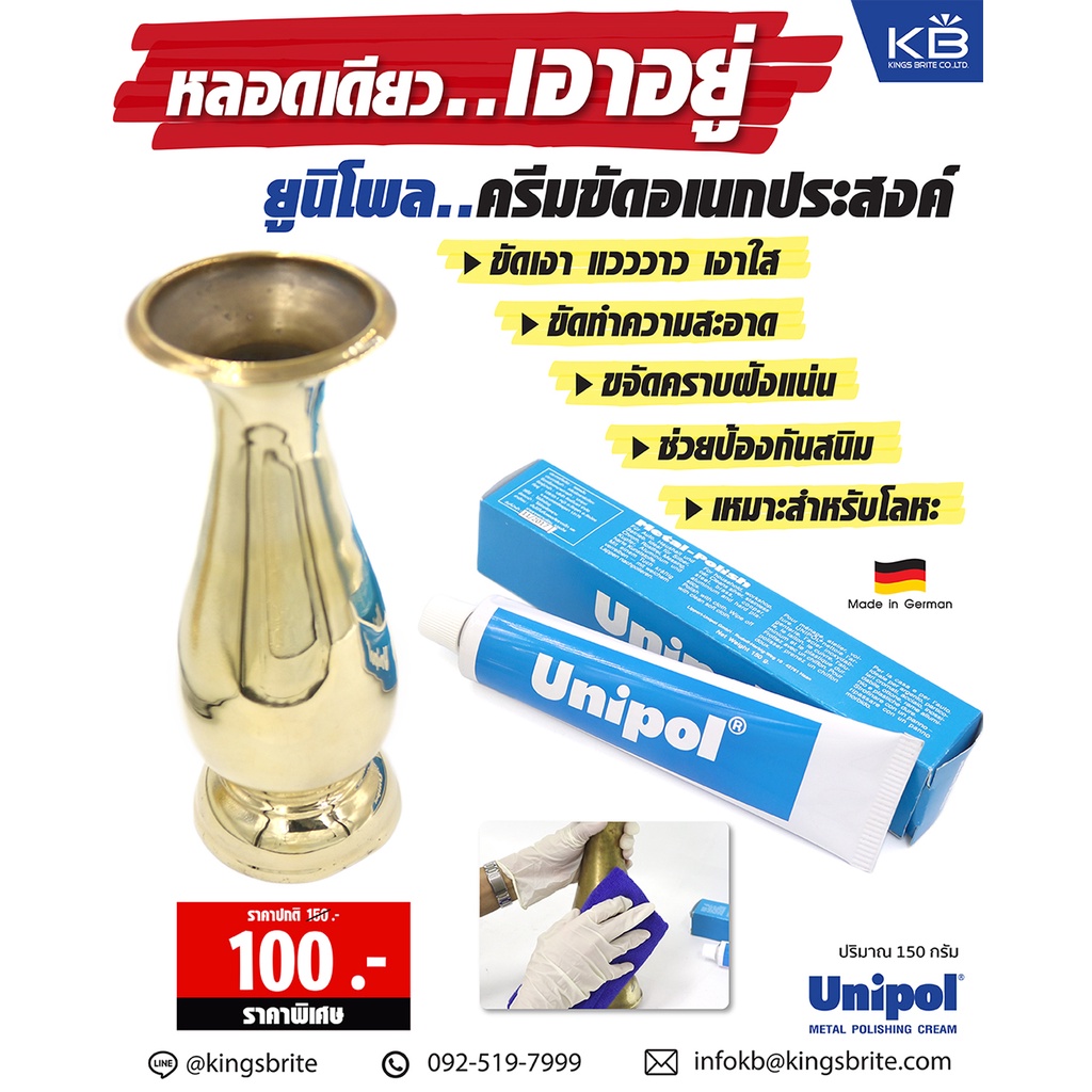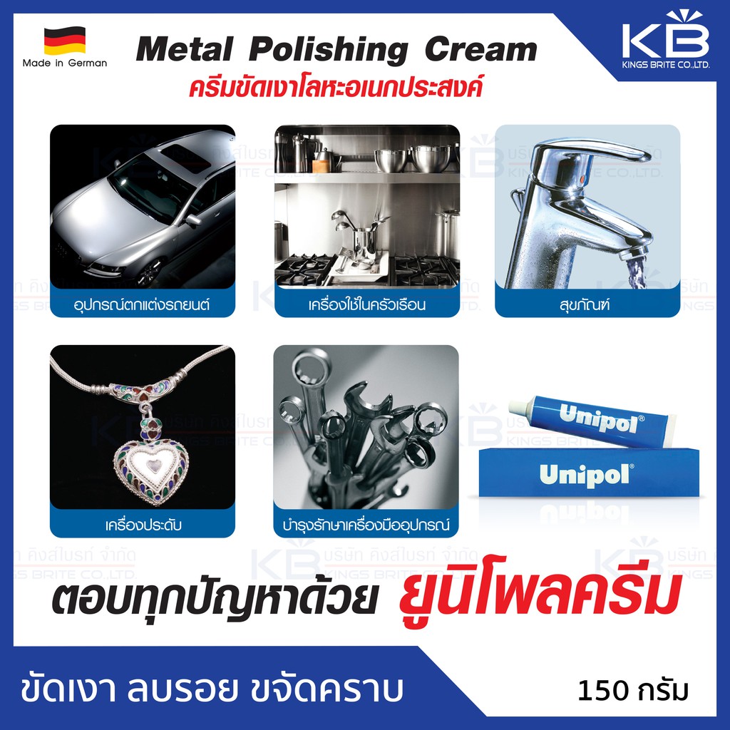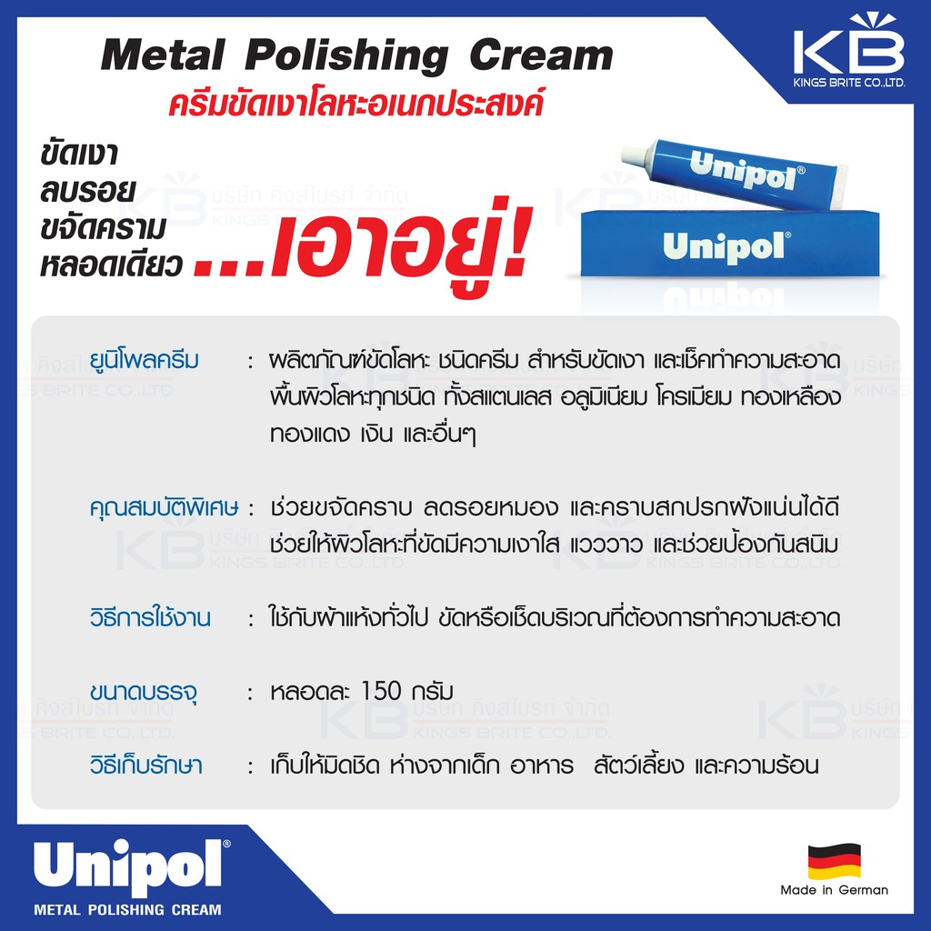 Unipol ครีมขัดเงาโลหะอเนกประสงค์ ใช้ขัดเงา-เช็ดทำความสะอาดพื้นผิวโลหะทุกชนิด ปริมาณ 150 กรัม