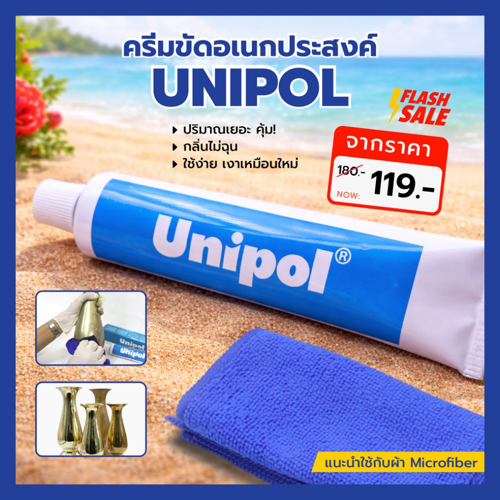 ซื้อครีมแถมผ้า ! Unipol ครีมขัดเงาโลหะอเนกประสงค์ ใช้ขัดเงา-เช็ดทำความสะอาดพื้นผิวโลหะทุกชนิด ปริมาณ 150 กรัม