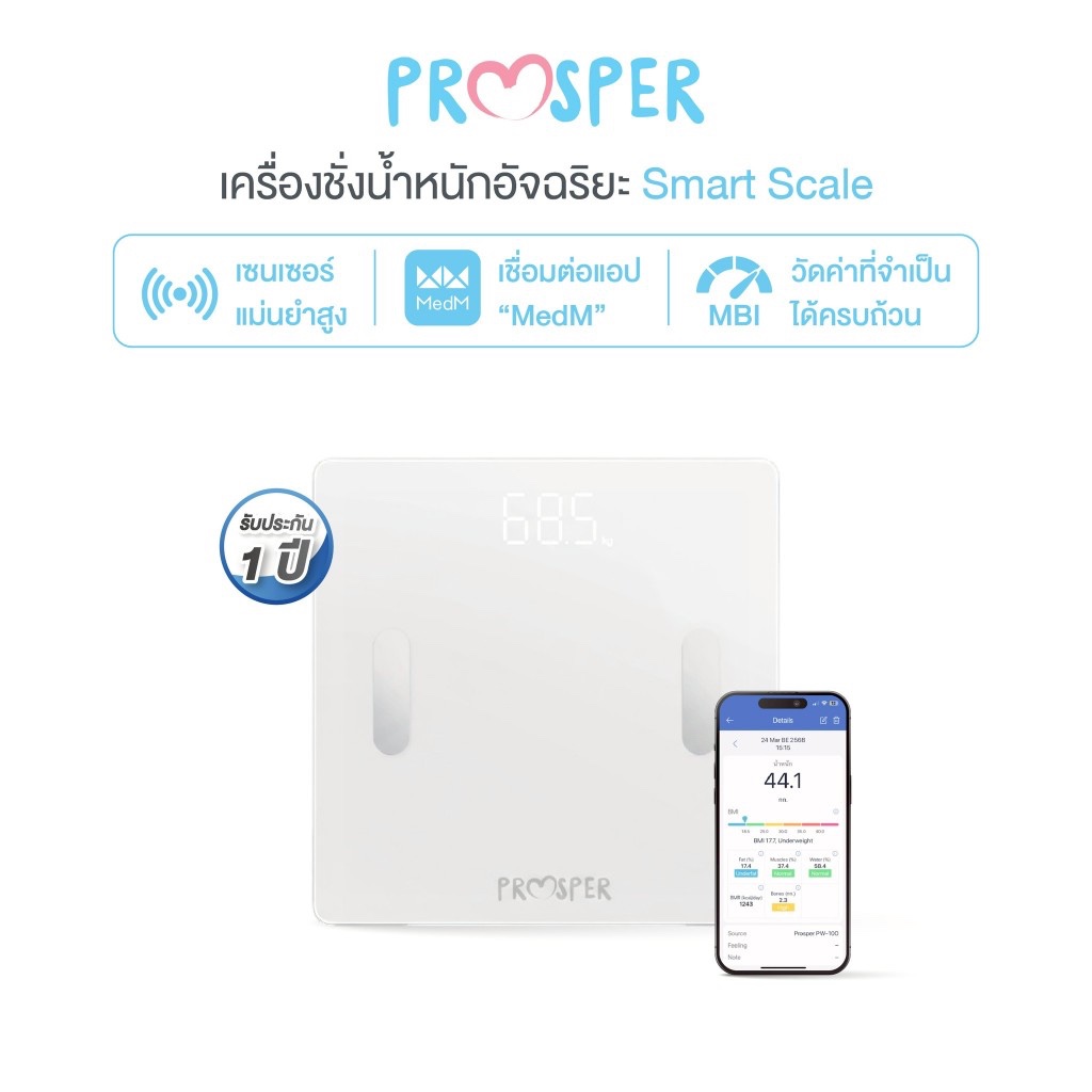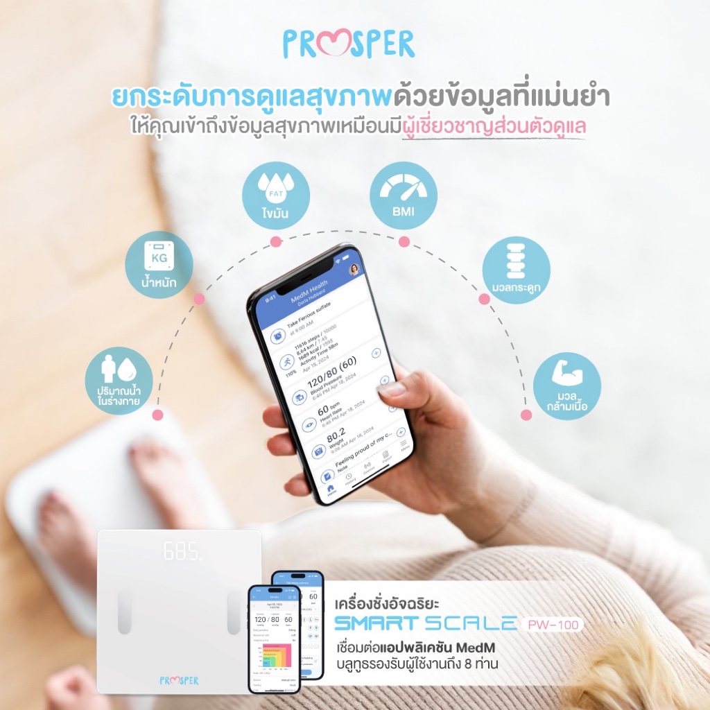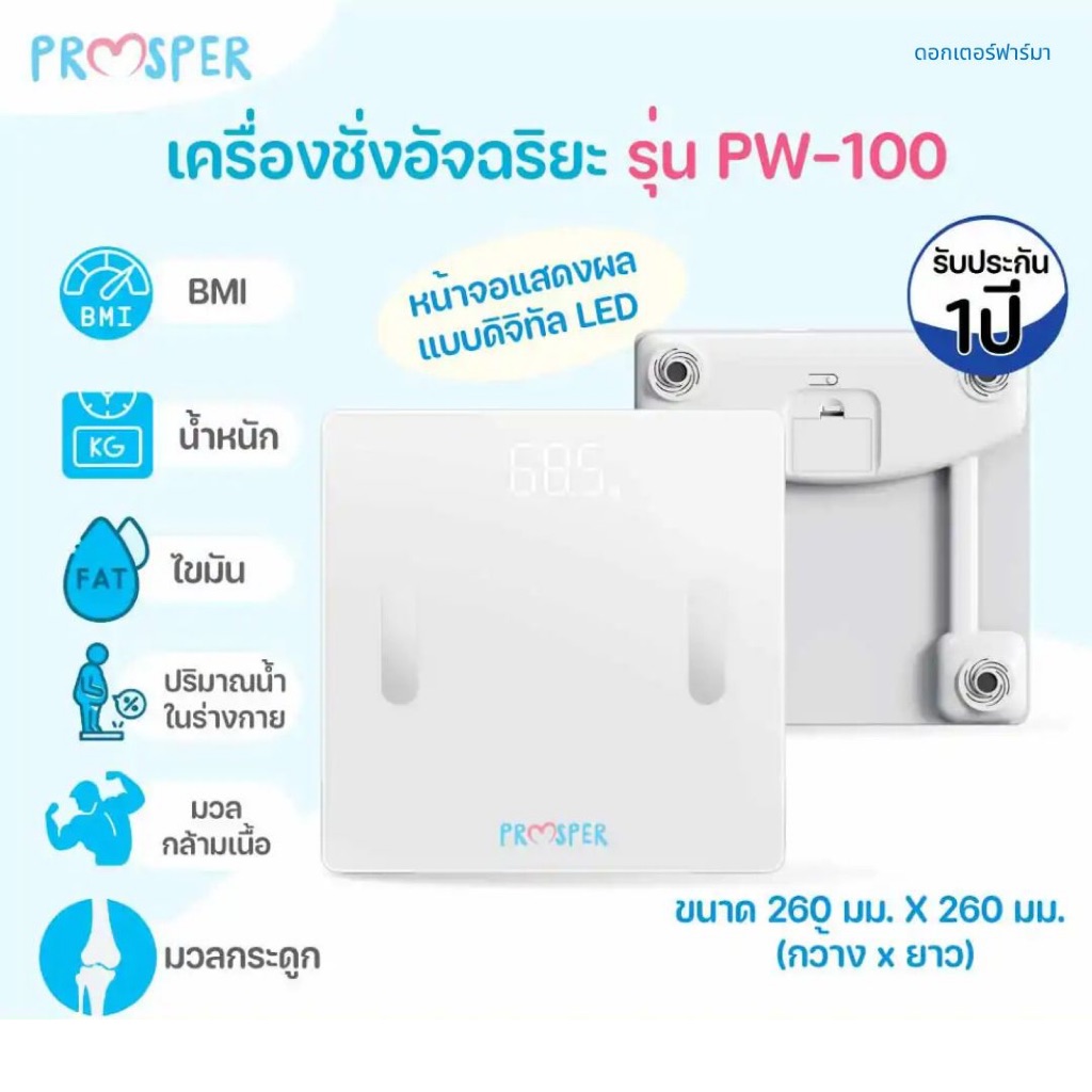 PROSPER เครื่องชั่งน้ำหนัก วัดไขมัน รุ่น PW-100 เชื่อมต่อแอพ iOS/Android