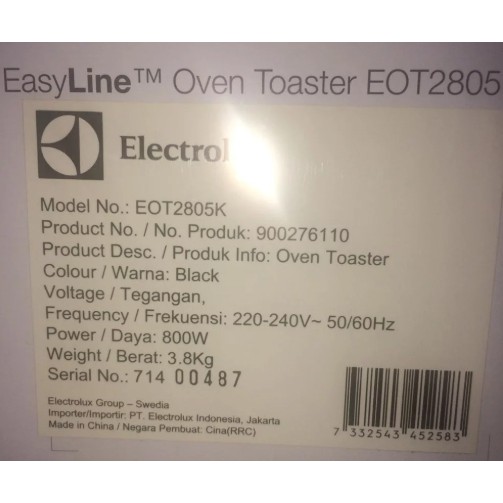 ( มีคูปองลดเพิ่ม ) ELECTROLUX เตาอบไฟฟ้า EOT0908X ( New 2022 ) ขนาด 9 ลิตร รับประกัน 2 ปีศูนย์บริการ