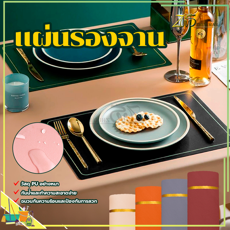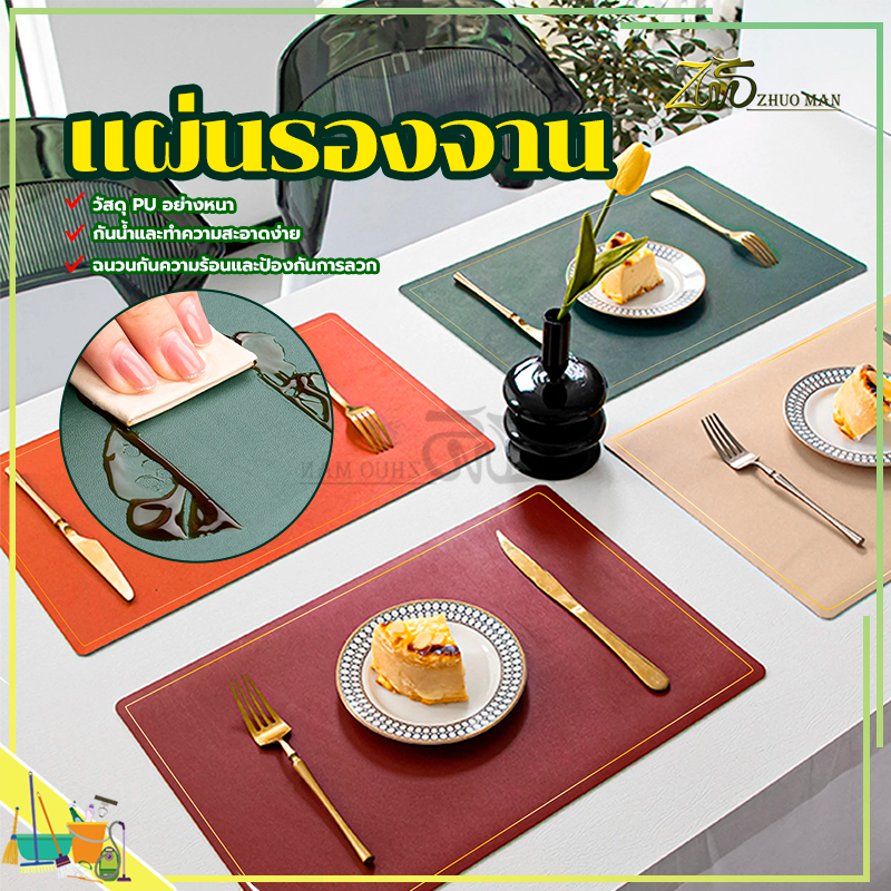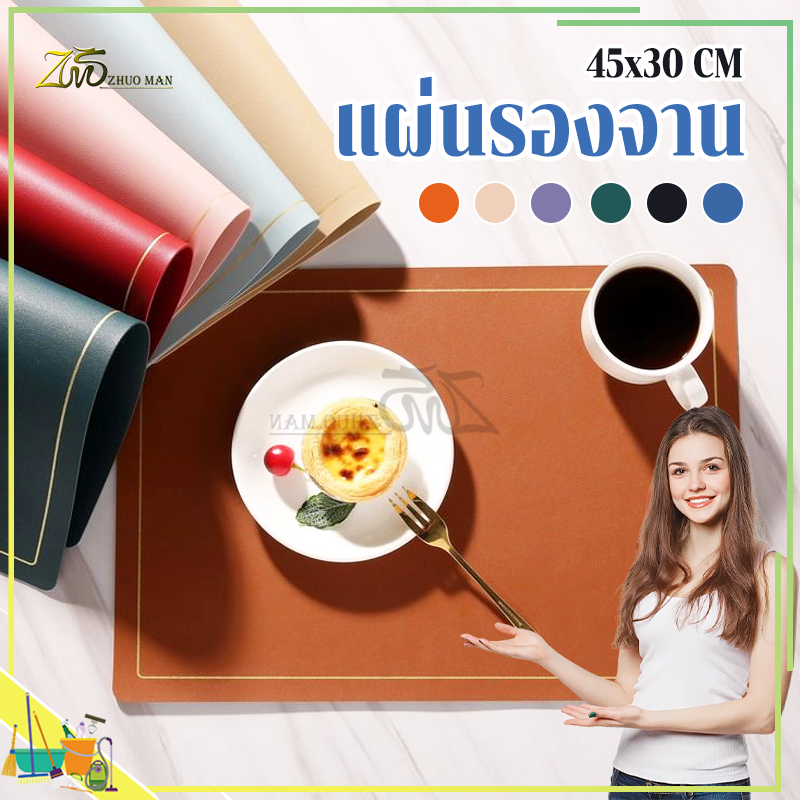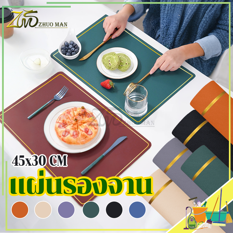 แผ่นรองจาน PU placemat ที่รองจาน ขนาด 45x30 cm แบบหนา ทนความร้อน กันน้ำ ผ้ารองจาน ใช้ได้ 2 ด้าน มี 6 สี