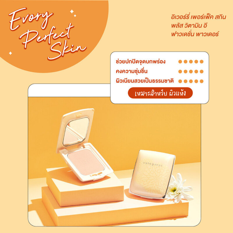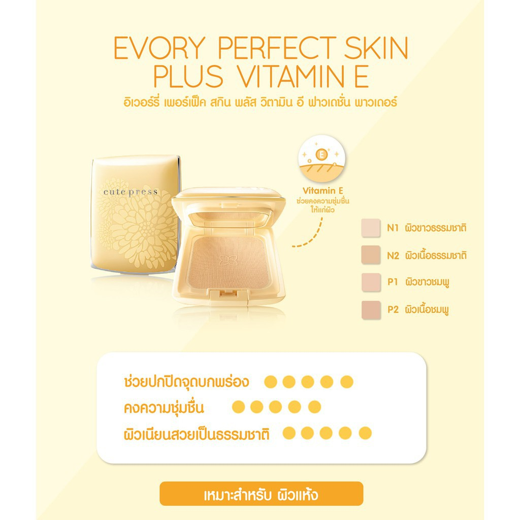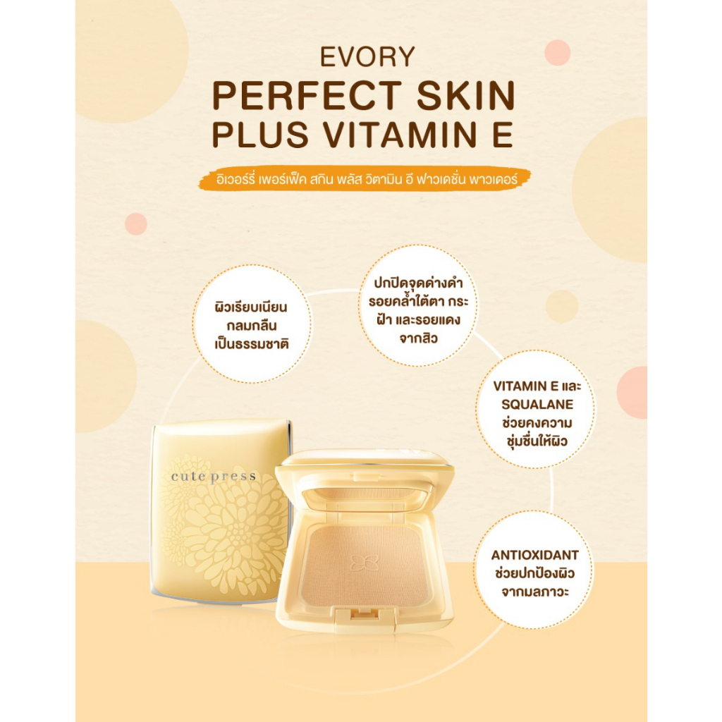 [Exp06/26] คิวท์เพรส สกิน พลัส วิตามิน อี ฟาวเดชั่น พาวเดอร์ 13g Cute Press Evory Perfect Skin VitaminE Powder