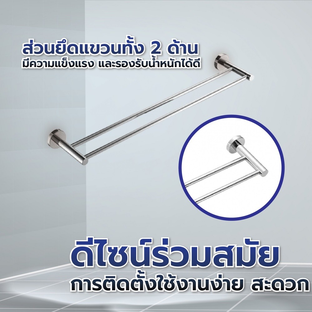 GlobalHouse Verno ราวพาดผ้าแบบคู่สแตนเลส304 รุ่น เวนิส DFXWY-906-SL ยาว 60 ซม. สินค้าของแท้คุณภาพดี