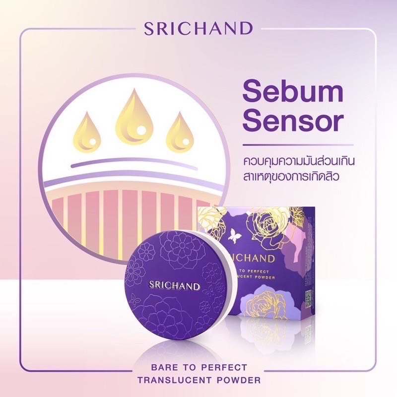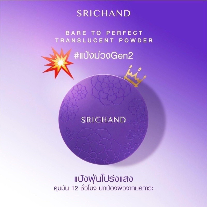SRICHAND ศรีจันทร์ แป้งม่วงเจน 2 แบร์ ทู เพอร์เฟคท์ ทรานส์ลูเซนท์ พาวเดอร์ ขนาด 4.5 กรัม #แป้งฝุ่น