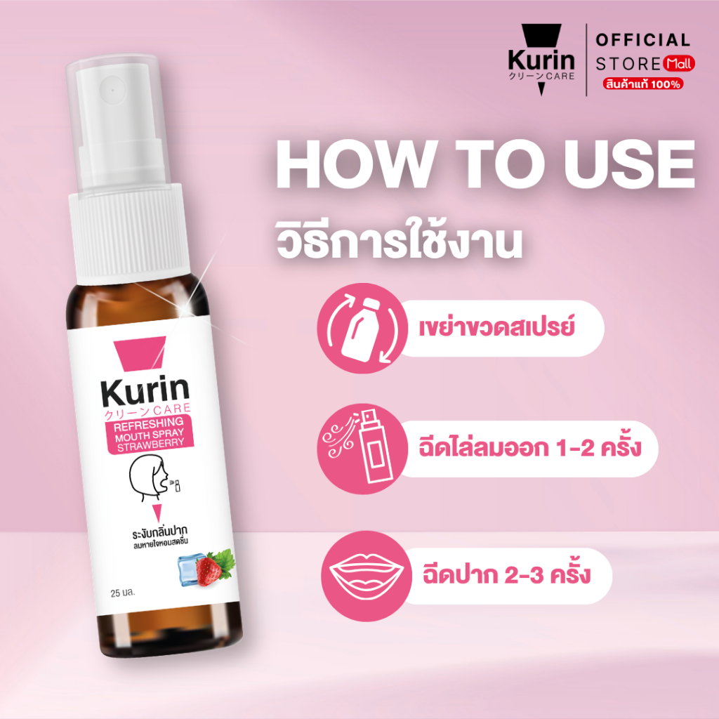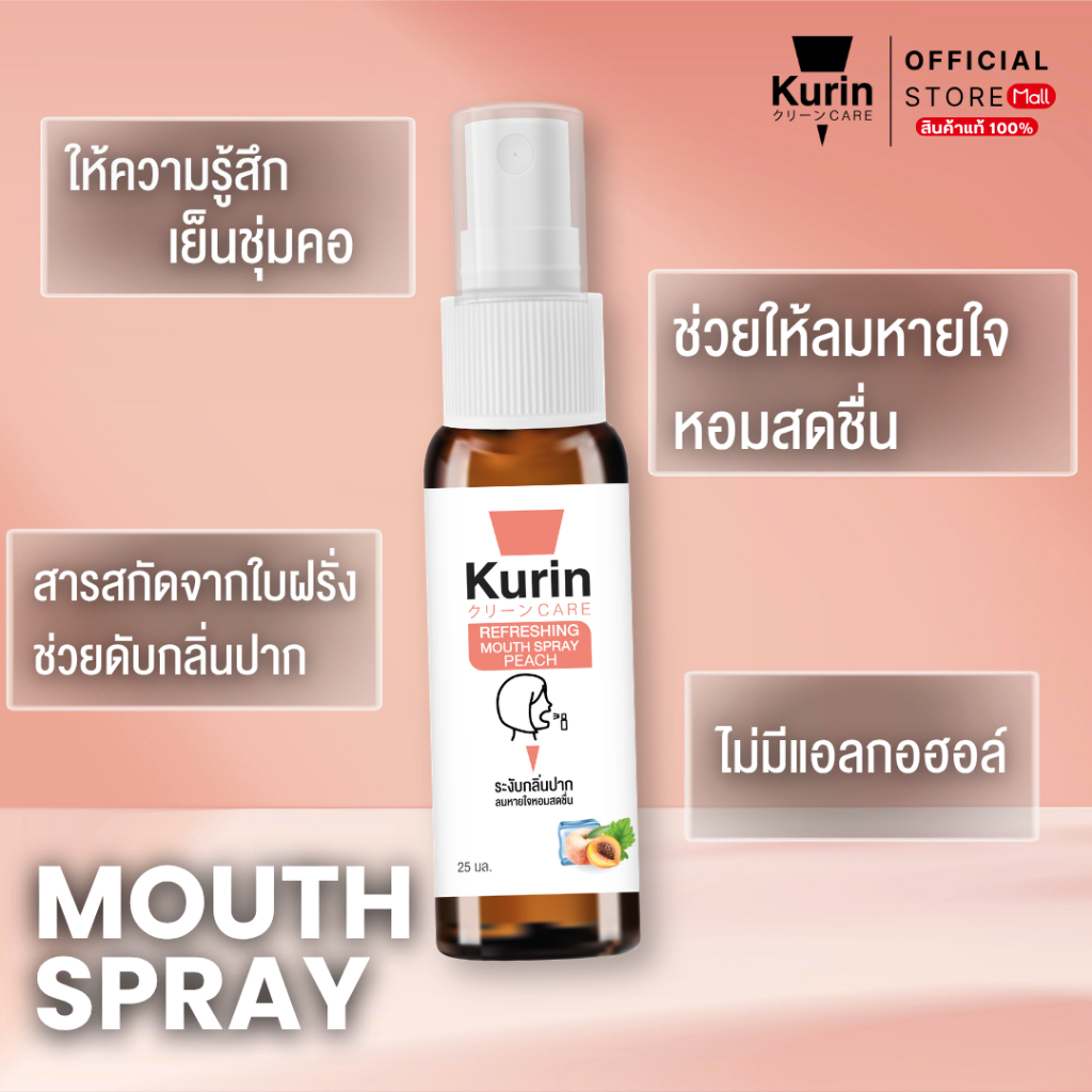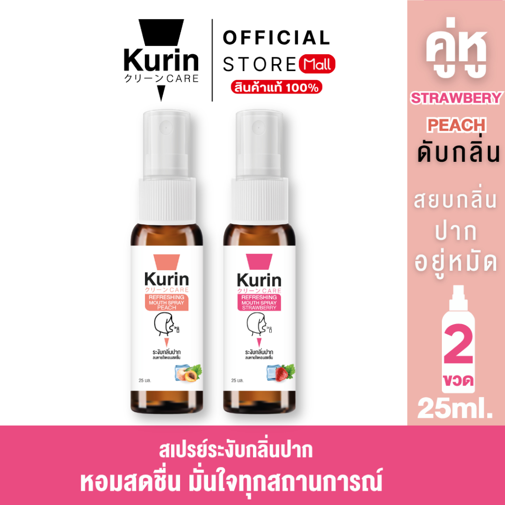 จับ คู่ Kurin care Refreshing Mouth Spray Peach & Strawberry 25 ml./ขวด