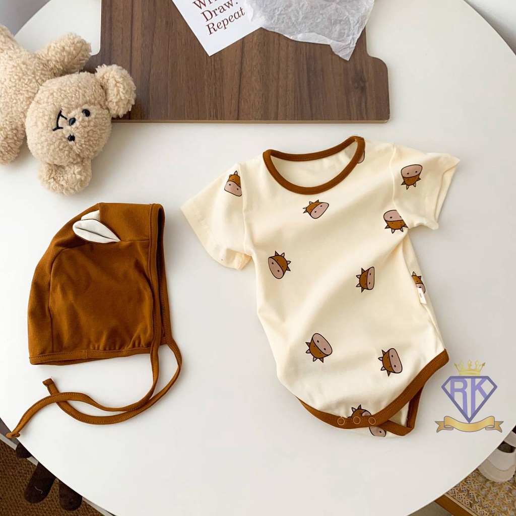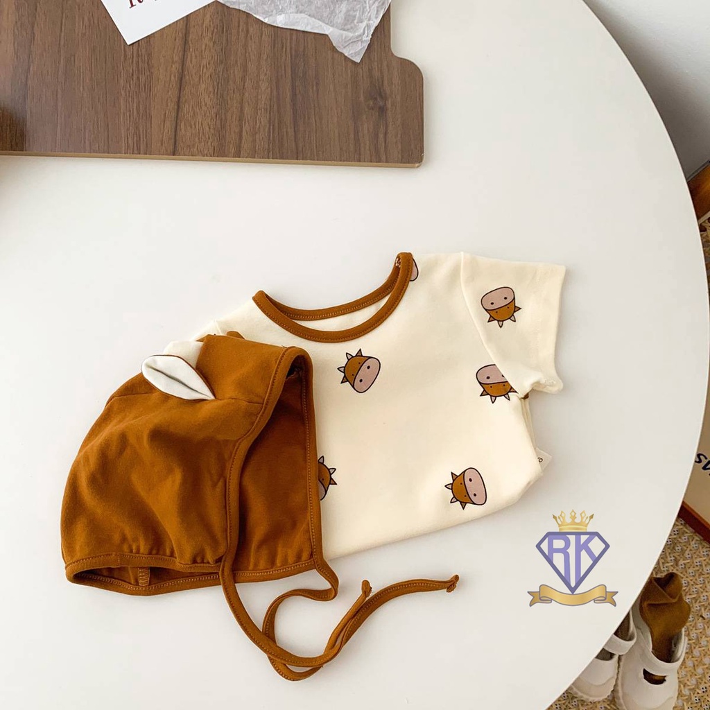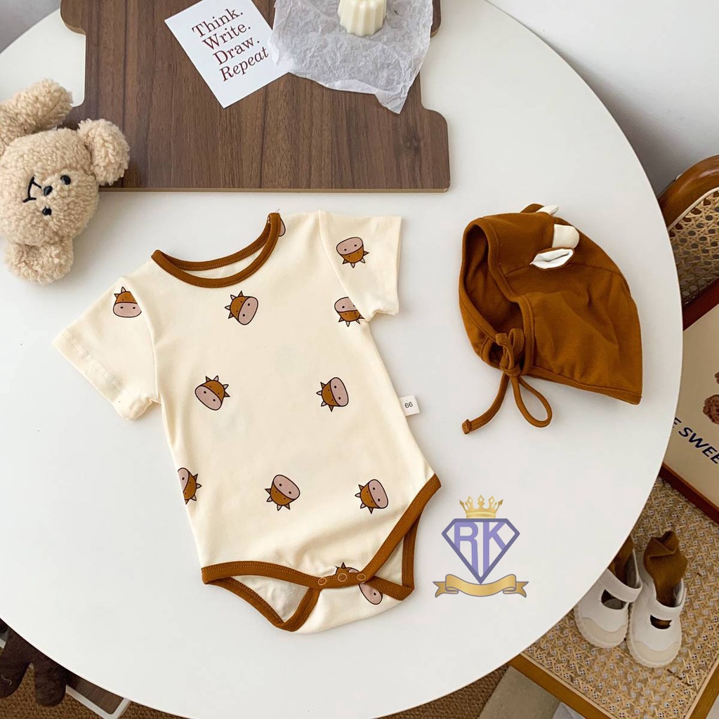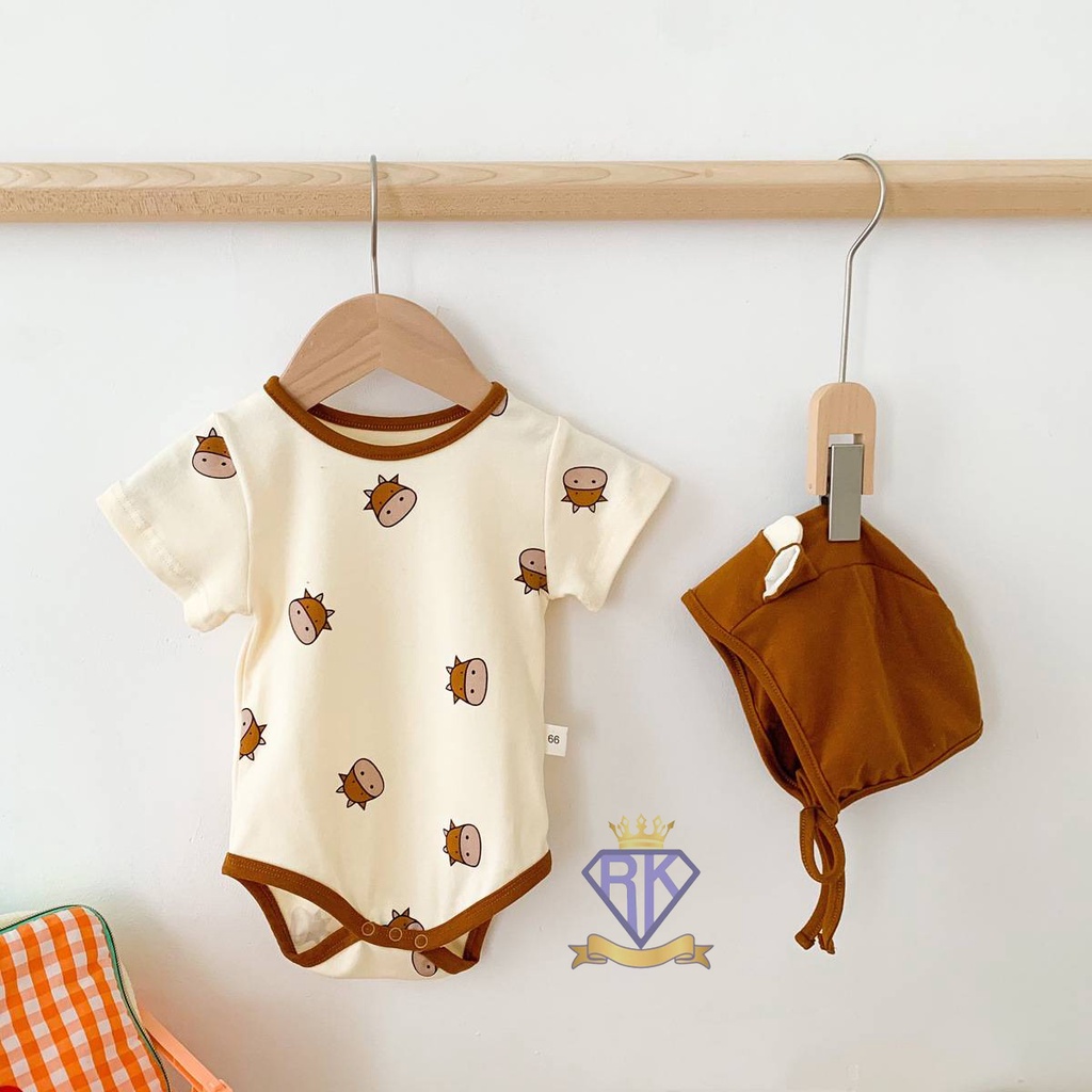 S008 ชุดเด็กอ่อน บอดี้สูทขาเว้าพร้อมหมวก ผ้าฝ้าย100% เสื้อผ้าเด็กอ่อน ชุดหมีเด็ก