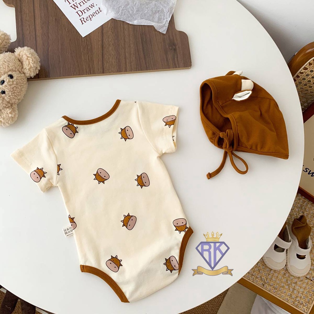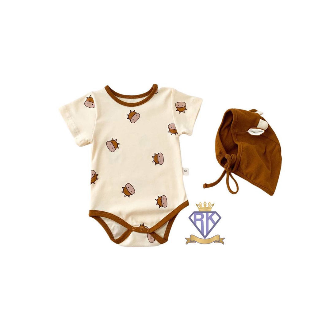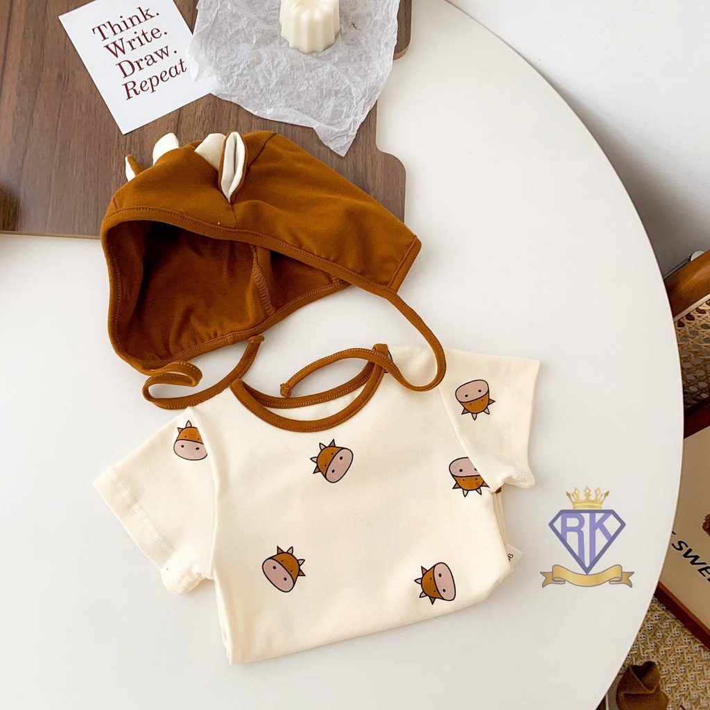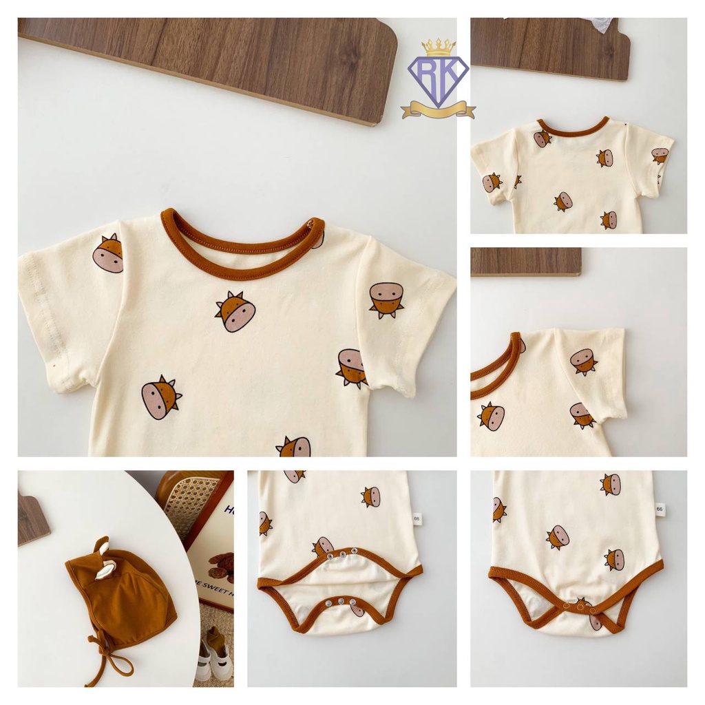 S008 ชุดเด็กอ่อน บอดี้สูทขาเว้าพร้อมหมวก ผ้าฝ้าย100% เสื้อผ้าเด็กอ่อน ชุดหมีเด็ก