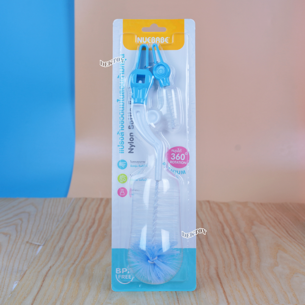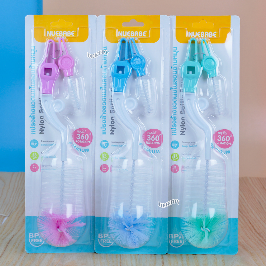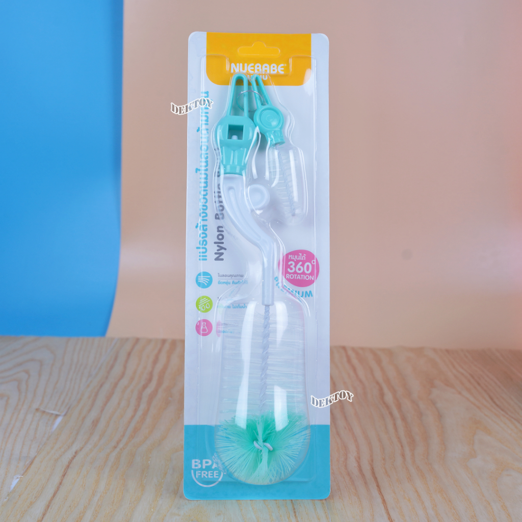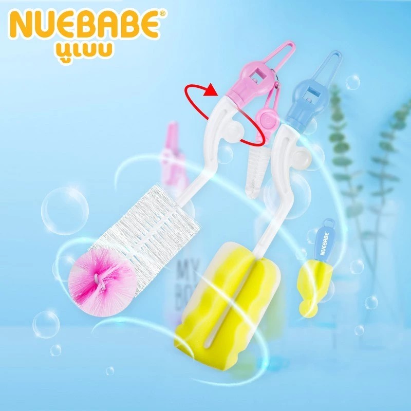 Nuebabe นูเบบ แปรงล้างขวดนมไนล่อนด้ามหมุน360องศา พร้อมแปรงล้างจุกนม BC0013