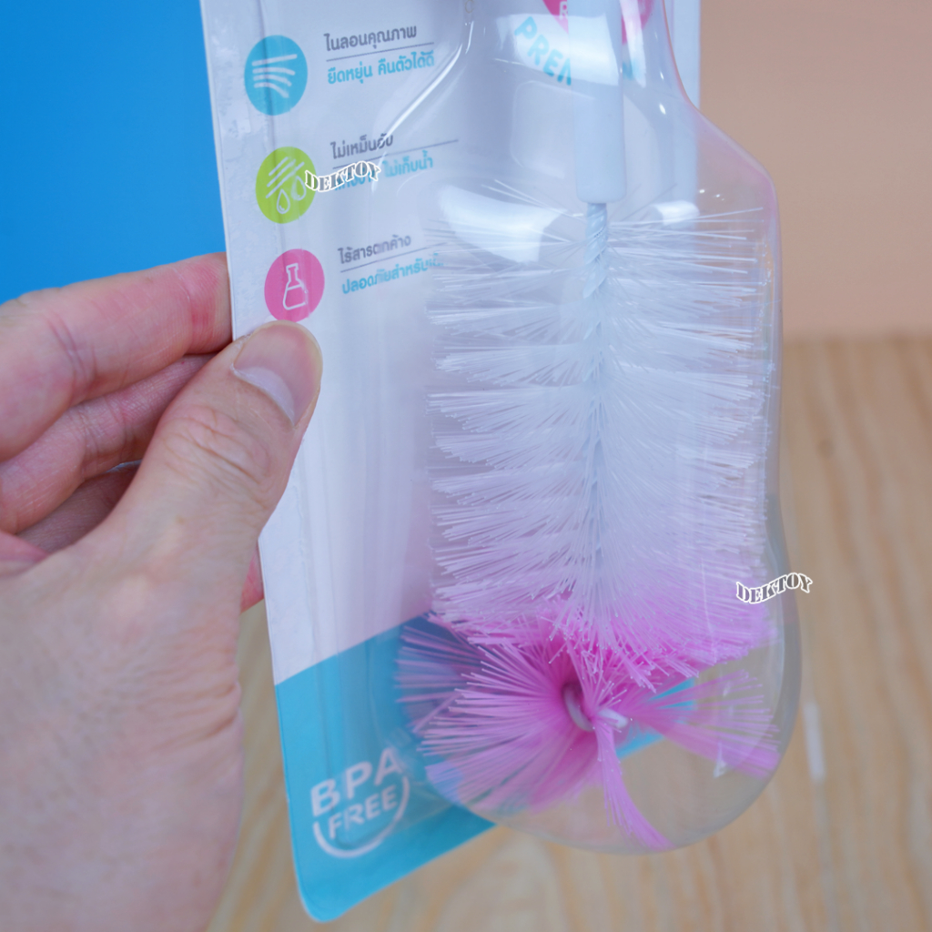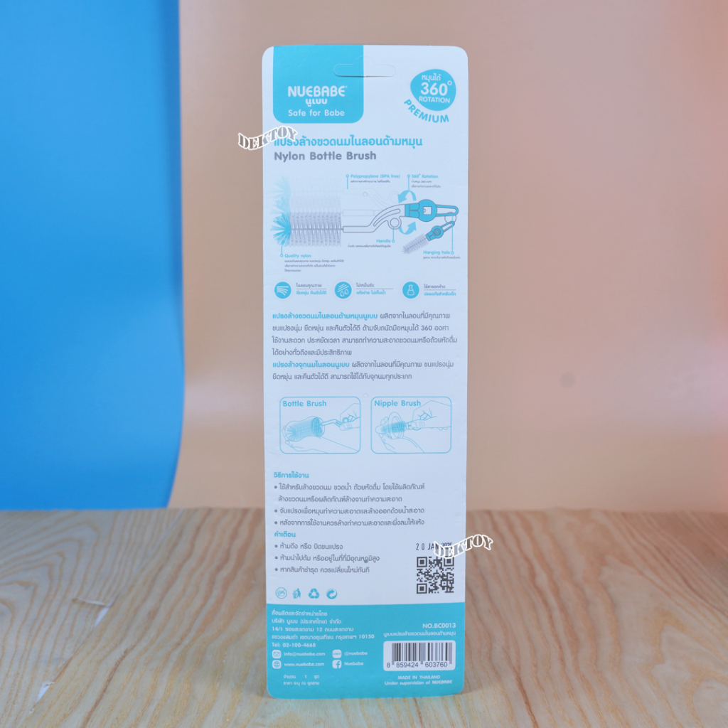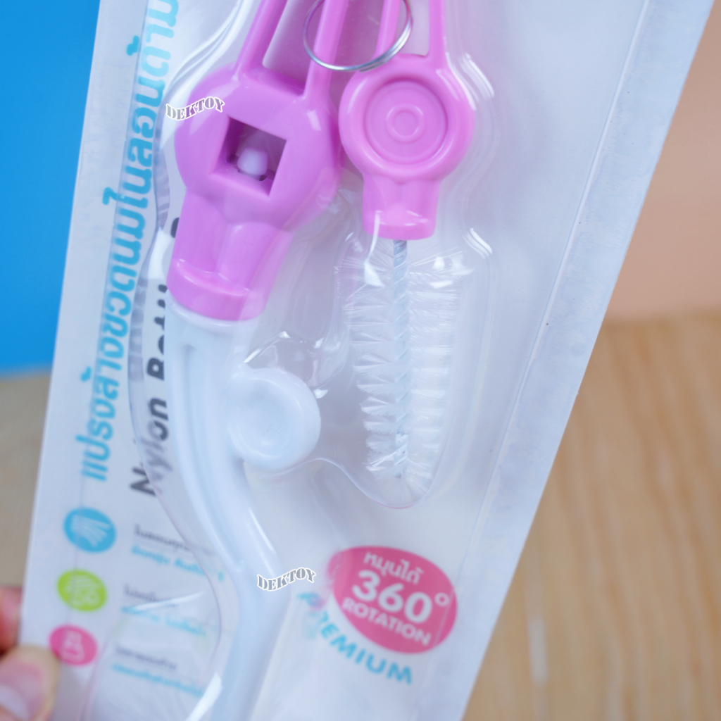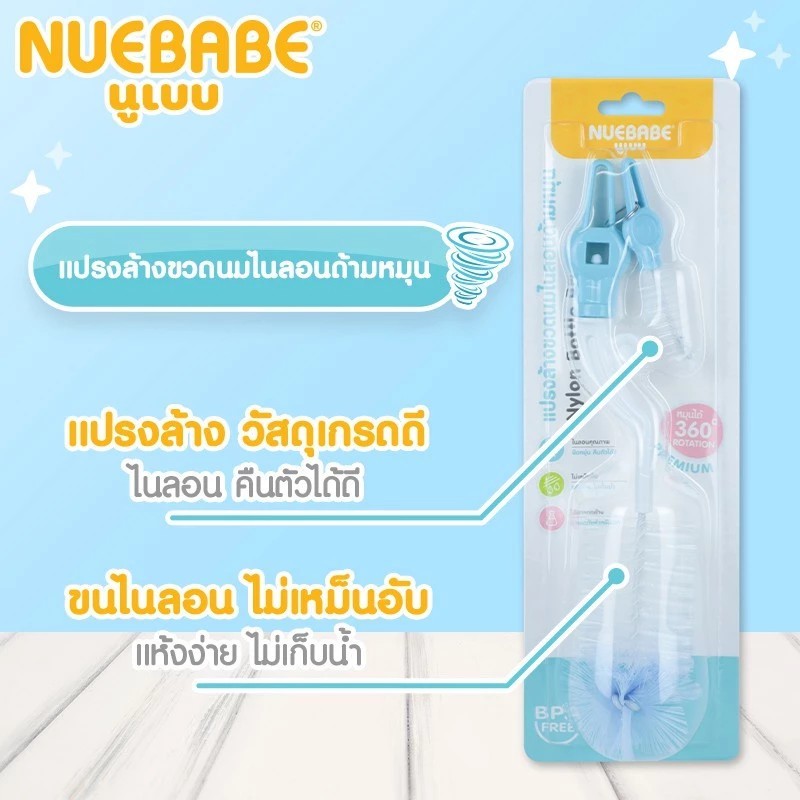 Nuebabe นูเบบ แปรงล้างขวดนมไนล่อนด้ามหมุน360องศา พร้อมแปรงล้างจุกนม BC0013