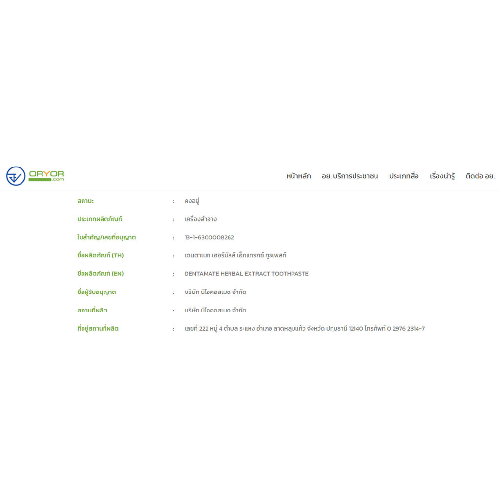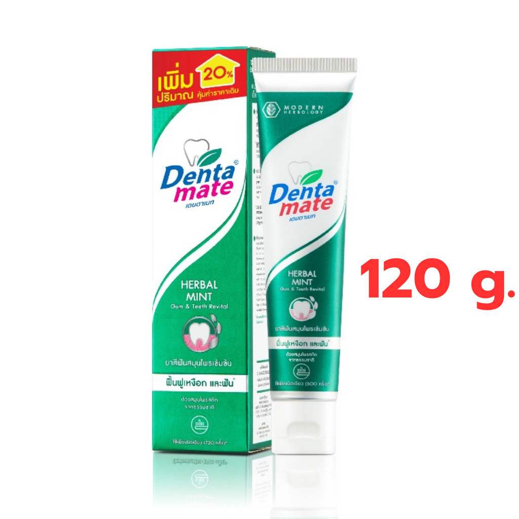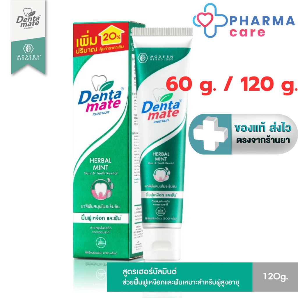 DENTAMATE Herbal Mint เดนตาเมท ยาสีฟันสมุนไพรเข้มข้น เฮอร์บัลมินต์ Sugar Free 60, 120 กรัม [PC]