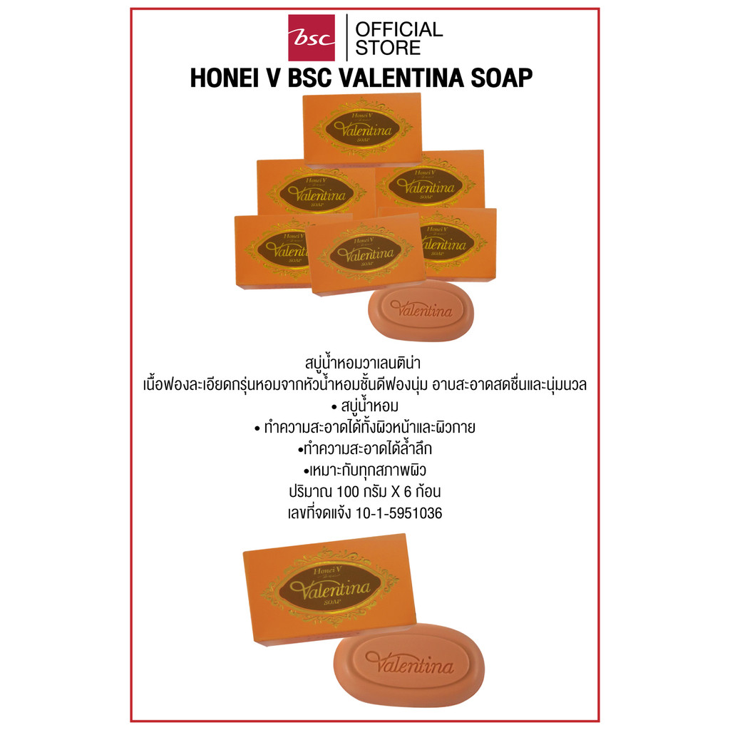 [ แพค 6 ชิ้น ] HONEI V BSC VALENTINA SOAP วาเลนติน่า เพอร์ฟูม ขนาด 100 กรัม สบู่น้ำหอมวาเลนติน่า เนื้อฟองละเอียด