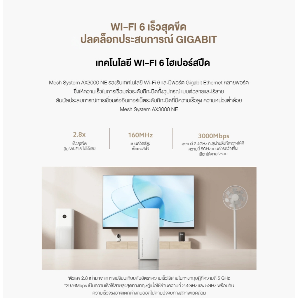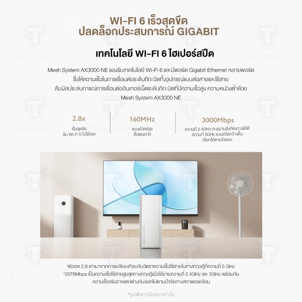 Xiaomi Mi Router Mesh System AX3000 NE เราเตอร์ไวไฟ Wi-Fi 6 ความเร็วไร้สายที่เร็วสุดถึง 3000Mbps (1-Pack)
