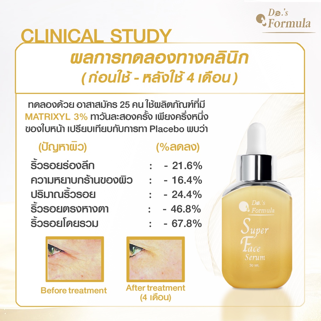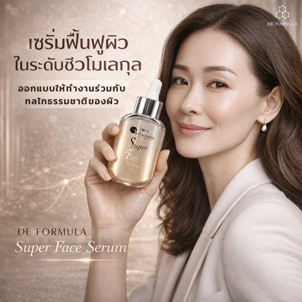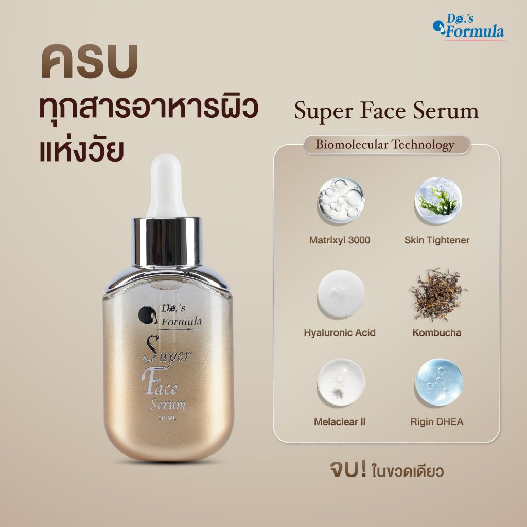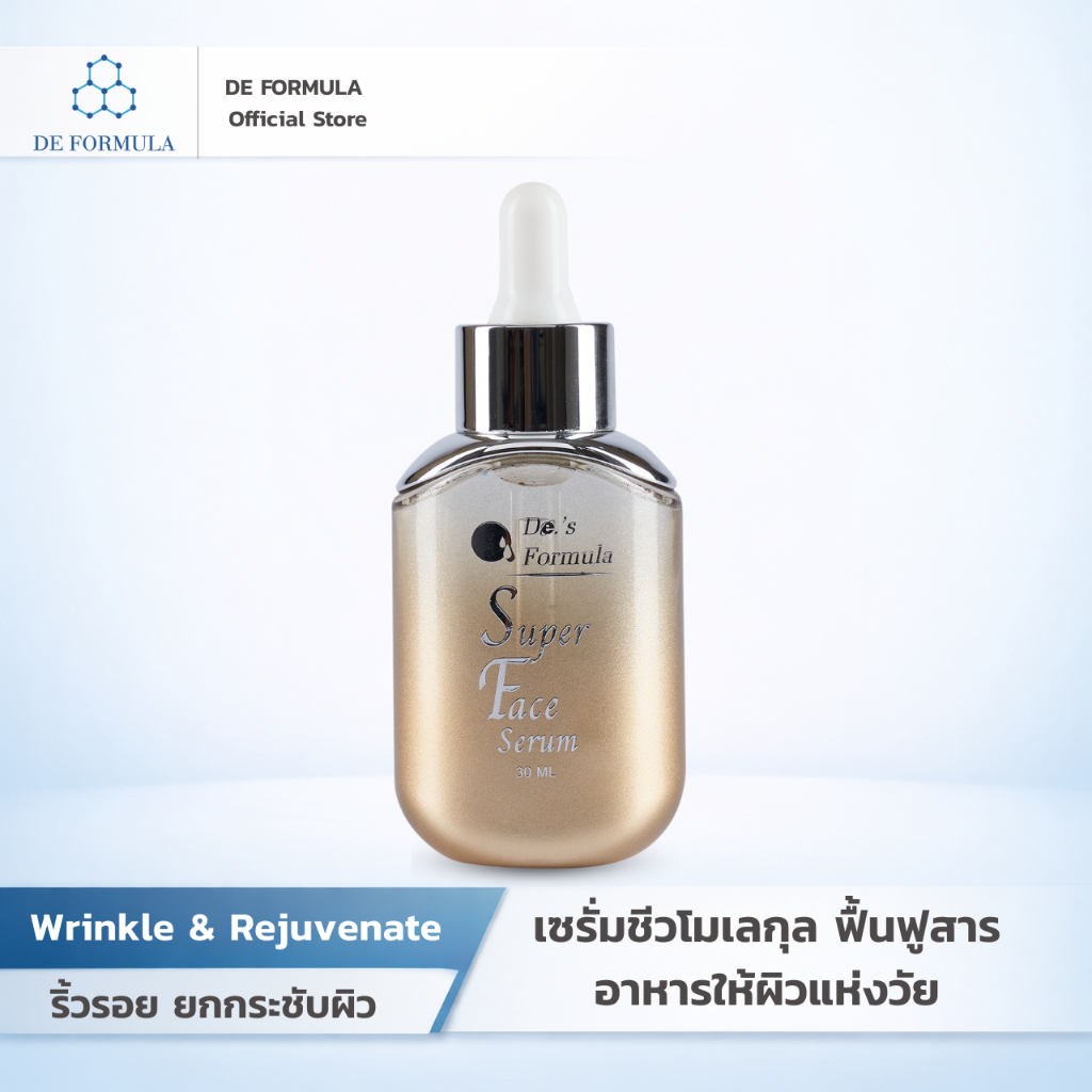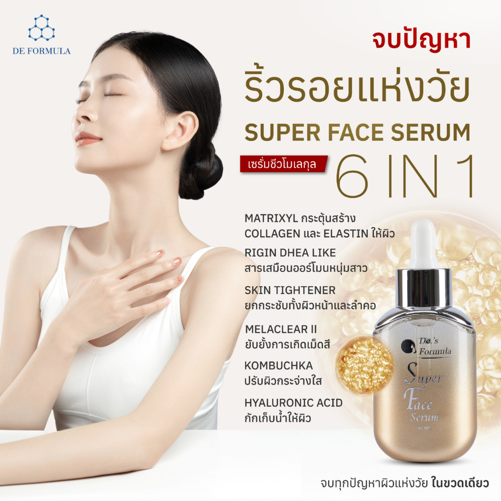 DE FORMULA Super Face Serum 30ml. เซรั่ม ลดริ้วรอย 6in1 ยกกระชับผิว เติมความชุ่มชื้น