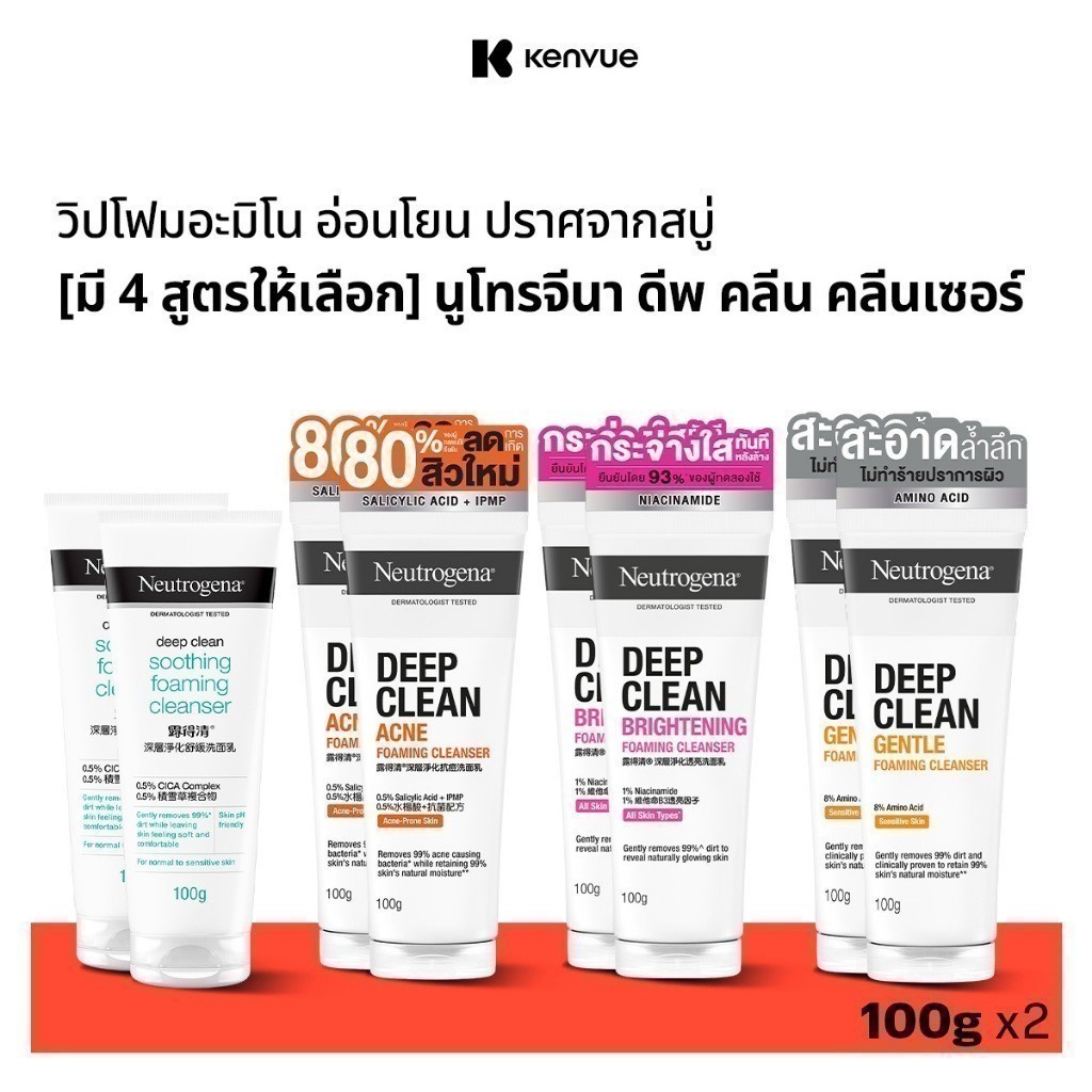 [มี 4 สูตรให้เลือก] Neutrogena Deep Clean Cleanser 100g. นูโทรจีนา ดีพ คลีน คลีนเซอร์ 100 กรัมx2, โฟมล้างหน้า, Cleanser