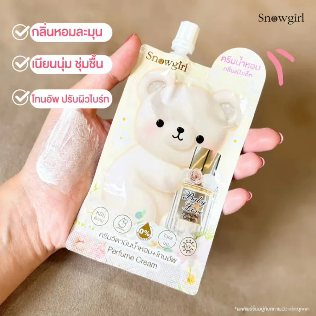 Snowgirl Baby Perfume Cream 35/20g.สโนว์เกิร์ล โลชั่นน้ำหอม เบบี้ คิส/เบบี้ คิ้วท์/เบบี้เลิฟ/บอดี้ยูวี (1ซอง)