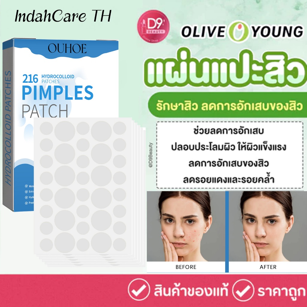 OUHOE แผ่นแปะสิว แผ่นแปะดูแลสิว ช่วยดูดสิว ลดการอักเสบ ขอบบาง กันน้ำ แต่งหน้าเนียน มองไม่เห็น 216pcs